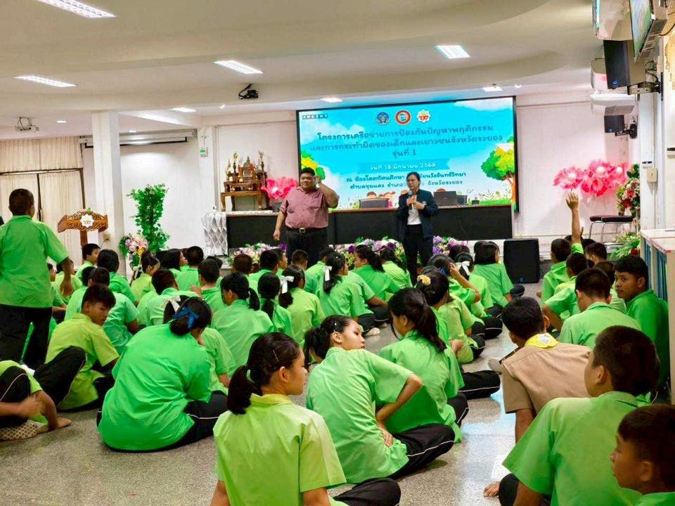 องค์การบริหารส่วนจังหวัดระยอง โดย กองการศึกษาศาสนาและวัฒนธรรม บูรณาการร่วมกับสถานพินิจและคุ้มครองเด็กและเยาวชนจังหวัดระยอง และสถานศึกษาในเขตจังหวัดระยอง จัดโครงการเครือข่ายการป้องกันปัญหาพฤติกรรมและการกระทำผิดของเด็กและเยาวชนจังหวัดระยอง รุ่นที่ 1 ในวันที่ 18 มิถุนายน 2568 ณ โรงเรียนวังจันทร์วิทยา อำเภอวังจันทร์ จังหวัดระยอง โดยมีนักเรียนโรงเรียนวังจันทร์วิทยา เข้าร่วมการอบรมครั้งนี้ จำนวน 100 คน มีวัตถุประสงค์เพื่อส่งเสริมและพัฒนาเด็กและเยาวชนให้มีความรู้ความเข้าใจ และปลูกจิตสำนึกในเรื่องกฎหมายและกระบวนการยุติธรรม ให้เด็กมีทักษะชีวิต ภูมิคุ้มกันทางจิตใจ และพฤติกรรมที่เหมาะสม โดยมีวิทยากรจาก สถานพินิจฯ, บ้านพักเด็กและครอบครัวจังหวัดระยอง และศูนย์คริสเตียนบริการไมตรีจิต (บ้านสะมาเรีย) มาให้ความรู้และประสบการณ์ในการป้องกันปัญหาพฤติกรรม และการกระทำผิดของเด็ก และเยาวชน