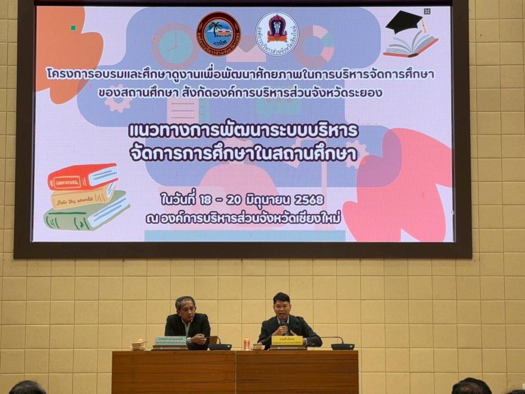 วันที่ 18 มิถุนายน 2568 เวลา 10.00 น. นายประสานต์ พฤกษาชาติ รองนายกองค์การบริหารส่วนจังหวัดระยอง (2) พร้อมด้วย คณะผู้บริหาร ผู้บริหารสถานศึกษา ครู บุคลากรทางการศึกษา และเจ้าหน้าที่ผู้เกี่ยวข้อง เข้าศึกษาดูงานองค์การบริหารส่วนจังหวัดเชียงใหม่ ซึ่งการศึกษาดูงานครั้งนี้เพื่อแลกเปลี่ยนเรียนรู้ พัฒนาศักยภาพในการบริหารจัดการการศึกษาของสถานศึกษา สังกัดองค์การบริหารส่วนจังหวัดระยอง