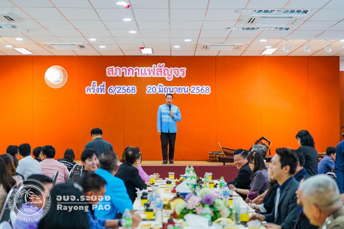 วันที่ 20 มิถุนายน 2568 เวลา 07.30 น. นายปิยะ ปิตุเตชะ นายกองค์การบริหารส่วนจังหวัดระยอง พร้อมด้วย คณะผู้บริหาร สมาชิกสภาองค์การบริหารส่วนจังหวัดระยอง หัวหน้าส่วนราชการ และผู้ที่เกี่ยวข้องเข้าร่วมกิจกรรมสภากาแฟสัญจร ครั้งที่ 6/2568 ประจำเดือนมิถุนายน 2568 โดยมี นายไตรภพ วงศ์ไตรรัตน์ ผู้ว่าราชการจังหวัดระยอง เป็นประธานกล่าวเปิดงาน ซึ่งกิจกรรมสภากาแฟสัญจร จะจัดขึ้นในทุกเดือน โดยกำหนดให้ส่วนราชการในจังหวัดระยองแต่ละภาคส่วนผลัดเปลี่ยนกันเป็นเจ้าภาพ โดยมีวัตถุประสงค์เพื่อเป็นการพบปะ สนทนาแลกเปลี่ยนความคิดเห็น รับฟังปัญหา และข้อเสนอแนะจากทุกภาคส่วน เพื่อประโยชน์ในการพัฒนาจังหวัดระยอง ซึ่งในครั้งนี้องค์การบริหารส่วนจังหวัดระยองได้เป็นเจ้าภาพในการจัดงาน และกล่าวต้อนรับพบปะพูดคุยกับหัวหน้าส่วนราชการและผู้เข้าร่วมงาน ณ โรงพยาบาลองค์การบริหารส่วนจังหวัดระยอง (ศูนย์บริการสุขภาพ ฟื้นฟู และดูแลผู้สูงอายุ) อำเภอเมืองระยอง จังหวัดระยอง