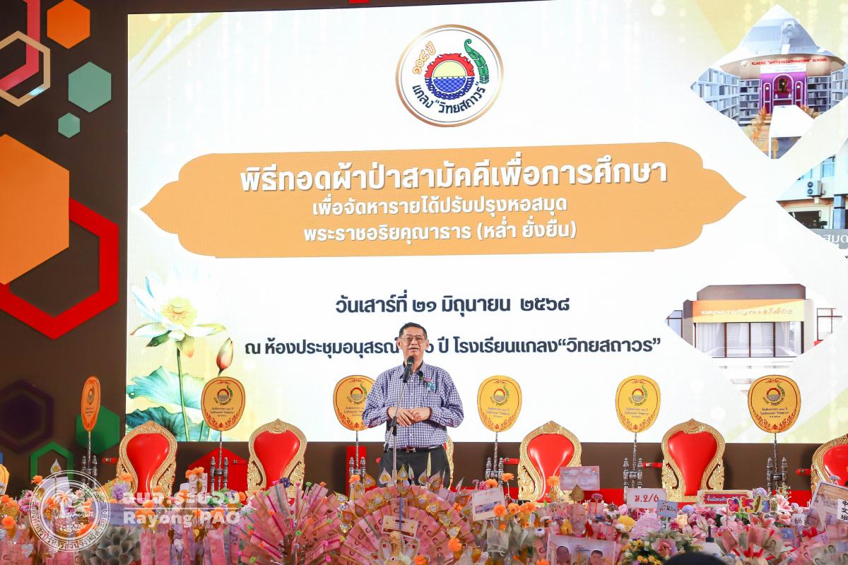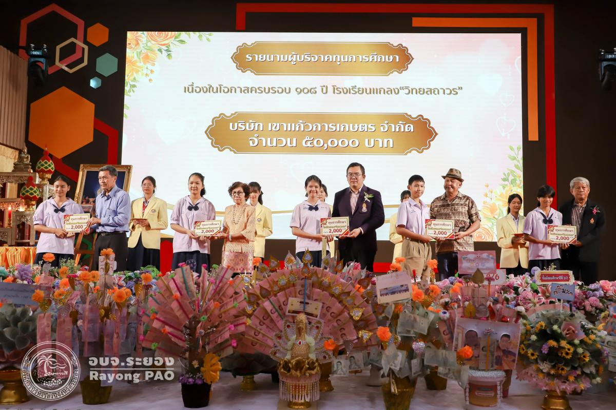 วันที่ 21 มิถุนายน เวลา 09.00 น. นายปิยะ ปิตุเตชะ นายกองค์การบริหารส่วนจังหวัดระยอง เป็นประธานฝ่ายฆราวาสในพิธีทอดผ้าป่าสามัคคีเพื่อการศึกษา เนื่องในโอกาสครบรอบ 108 ปี โรงเรียนแกลง“วิทยสถาวร” พร้อมด้วยนายจรัญ ความเพียร เลขานุการนายกองค์การบริหารส่วนจังหวัดระยอง โดยมีวัตถุประสงค์ เพื่อจัดหาทุนพัฒนาการศึกษาและปรับปรุงหอสมุดพระราชอริยคุณาธาร (หล่ำ ยั่งยืน) ให้เป็นห้องสมุดดิจิทัลที่ทันสมัย ซึ่งภายในงานมีพิธีมอบโล่ให้กับผู้ทำคุณประโยชน์ต่อสถานศึกษา/ครูดีศรี วส./และมอบทุนการศึกษานักเรียนจำนวน 109 ทุน ถวายจตุปัจจัย เครื่องไทยธรรมแด่พระสงฆ์ จำนวน 9 รูป ถวายต้นผ้าป่าสามัคคี (พานสายสิญจน์) ณ ห้องประชุมอนุสรณ์ 106 ปี โรงเรียนแกลง"วิทยสถาวร"