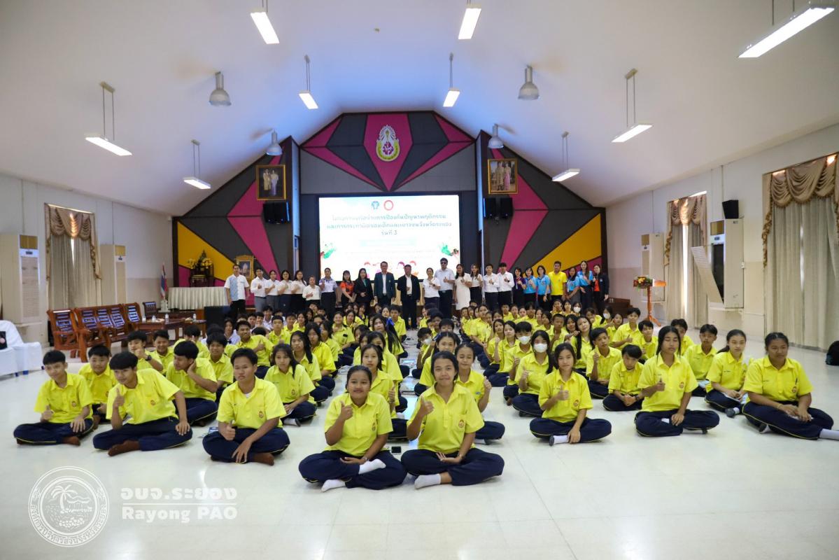 วันที่ 26 มิถุนายน 2568 เวลา 13.00 น. นายธงชัย มั่นคง ผู้เชี่ยวชาญด้านการศึกษา ศาสนา และวัฒนธรรมองค์การบริหารส่วนจังหวัดระยอง เป็นประธานในพิธีเปิดโครงการเครือข่ายการป้องกันปัญหาพฤติกรรมและการกระทำผิดของเด็กและเยาวชนจังหวัดระยอง รุ่นที่ 3 โดยมีวัตถุประสงค์เพื่อส่งเสริมและพัฒนาเด็กและเยาวชนให้มีความรู้ความเข้าใจ และปลูกฝังจิตสำนึกในเรื่องกฎหมายและกระบวนการยุติธรรม เฝ้าระวังและลดปัญหาพฤติกรรมเสี่ยงและการกระทำผิดของเด็กและเยาวชนในพื้นที่จังหวัดระยอง ซึ่งมีนักเรียนจากโรงเรียนมาบตาพุดพันพิทยาคาร จำนวน 100 คน เข้าร่วมโครงการฯอย่างพร้อมเพรียงกัน ณ โรงเรียนมาบตาพุดพันพิทยาคาร อำเภอเมืองระยอง จังหวัดระยอง