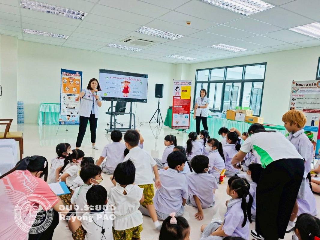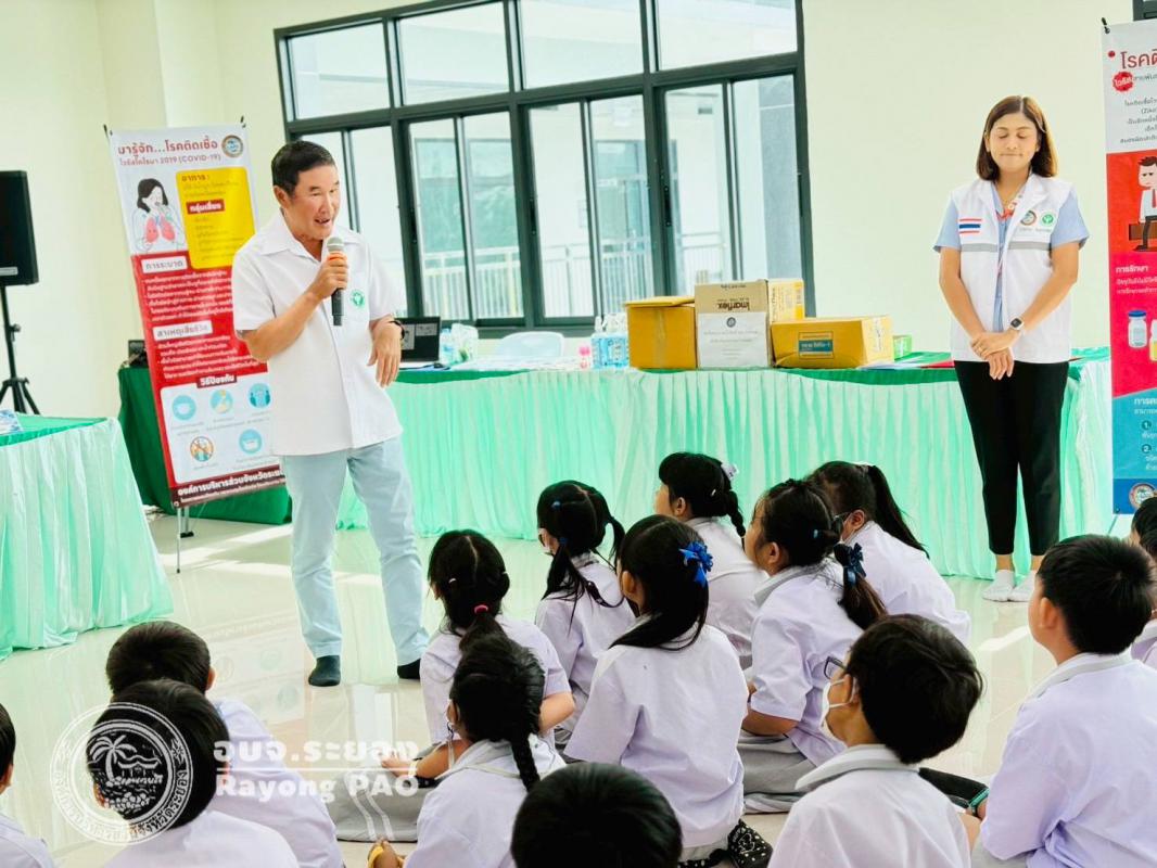 ในการนี้ งานป้องกันและควบคุมโรค ฝ่ายส่งเสริมสาธารณสุข กองสาธารณสุข องค์การบริหารส่วนจังหวัดระยอง นำโดย นายแพทย์ชัยวัฒน์ จตุพร (ผู้ทรงคุณวุฒิเฉพาะทางด้านการแพทย์และระบบประกันสุขภาพ) ได้ดำเนินกิจกรรม “ดูแลตนเองอย่างไร ให้ห่างไกลโรคติดต่อ” ให้แก่นักเรียนและบุคลากรทางการศึกษา ในสถานศึกษา สังกัดองค์การบริหารส่วนจังหวัดระยอง เพื่อสร้างความรู้ ความเข้าใจ ตลอดจนทักษะเบื้องต้นในการดูแลตนเองให้ห่างไกลจากโรคติดต่อ โดยเฉพาะโรคติดต่อจากการสัมผัส และโรคติดเชื้อระบบทางเดินหายใจ เพราะเชื้อโรคเหล่านี้เข้าสู่ร่างกายและแพร่กระจายเชื้อโรคไปสู่ผู้อื่นได้ง่าย ณ โรงเรียนนานาชาติสินระยอง อำเภอแกลง จังหวัดระยอง
