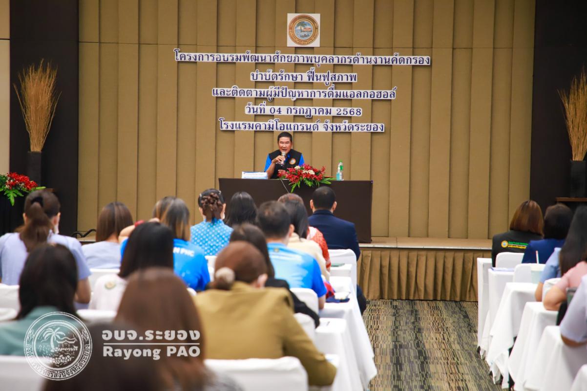 วันที่ 4 กรกฎาคม 2568 เวลา 09.00 น. นายแพทย์ชัยวัฒน์ จัตตุพร ผู้ทรงคุณวุฒิด้านการแพทย์และหลักประกันสุขภาพ เป็นประธานกล่าวเปิด “โครงการอบรมพัฒนาศักยภาพบุคลากรด้านงานคัดกรอง บำบัดรักษา ฟื้นฟูสภาพและติดตามผู้มีปัญหาการดื่มแอลกอฮอล์” ณ โรงแรมคามิโอ แกรนด์ ระยอง โดยมีนายสุริยะ ศิริวัฒน์ ผู้อำนวยการกองสาธารณสุข เป็นผู้กล่าวรายงาน