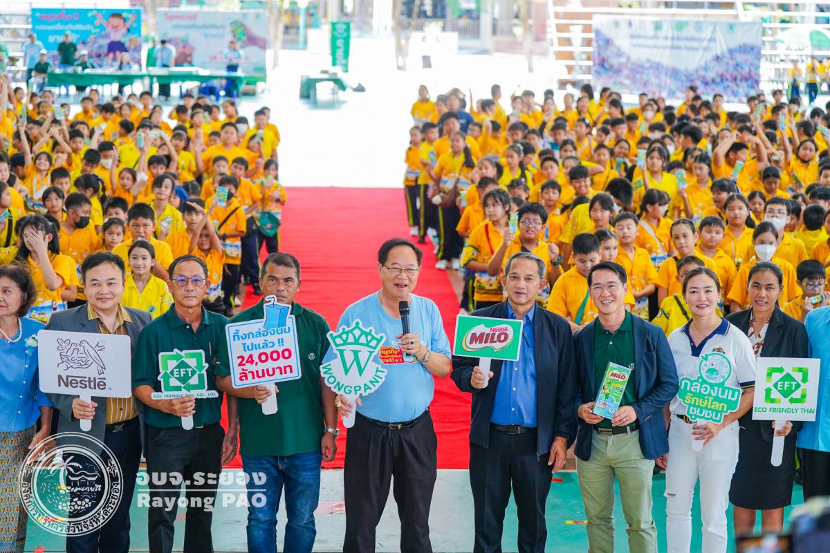 วันที่ 8 สิงหาคม 2568 เวลา 13.00 น. ณ โรงเรียนอนุบาลนานาชาติตากสินระยอง นายประสานต์ พฤกษาชาติ รองนายกองค์การบริหารส่วนจังหวัดระยอง (2) เป็นประธานเปิดกิจกรรม “ปฏิบัติการหยุดทิ้ง กล่องเครื่องดื่มใช้แล้วขายได้ กับกิจกรรมกล่องนมรักษ์โลก (ชุมชน) ปีที่ 3” พร้อมด้วย คณะผู้บริหารสถานศึกษา ครู นักเรียน และผู้ที่เกี่ยวข้องได้เข้าร่วมพิธีเปิดกิจกรรมฯ อย่างพร้อมเพรียงกัน โดยกิจกรรมดังกล่าวมีวัตถุประสงค์เพื่อส่งเสริมองค์ความรู้เกี่ยวกับการคัดแยกขยะตั้งแต่ต้นทาง การรับซื้อและรวบรวมบรรจุภัณฑ์ที่ใช้แล้ว โดยเฉพาะกล่องเครื่องดื่มทุกประเภท ตลอดจนสนับสนุนการสร้างระบบเศรษฐกิจหมุนเวียนอย่างยั่งยืนสืบไป
