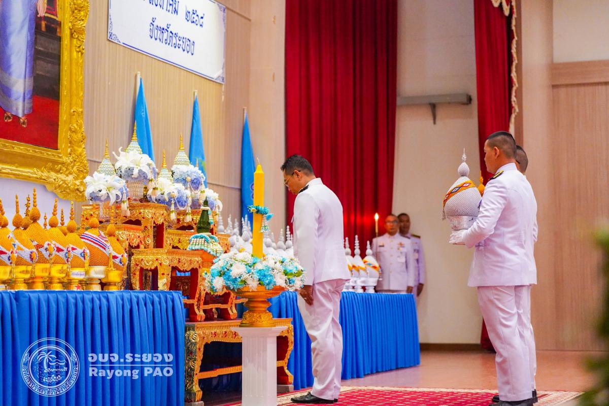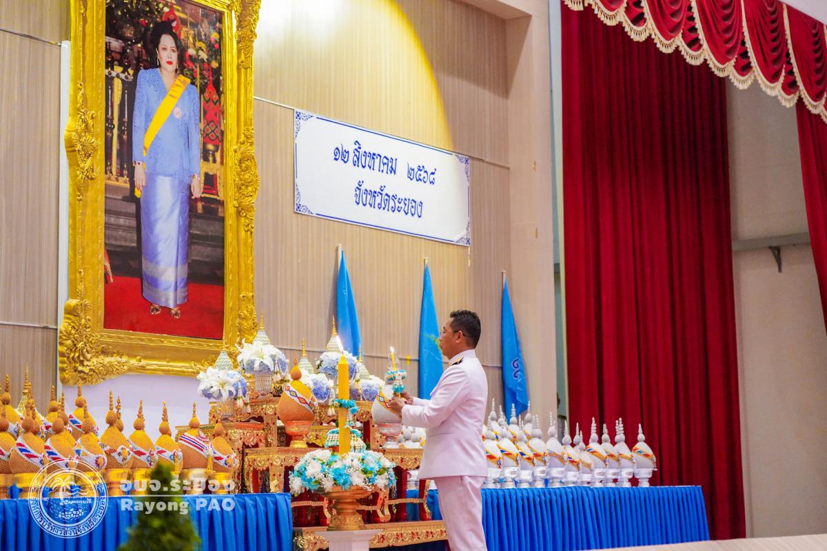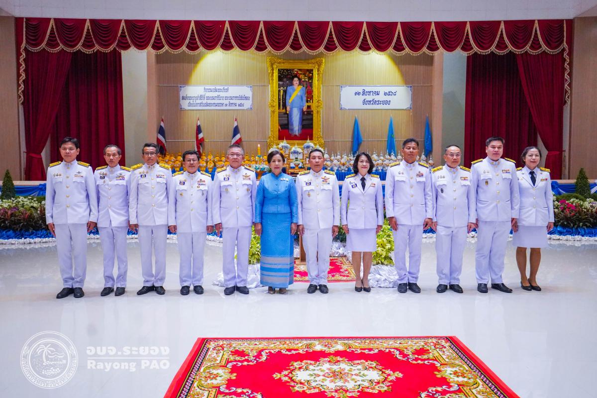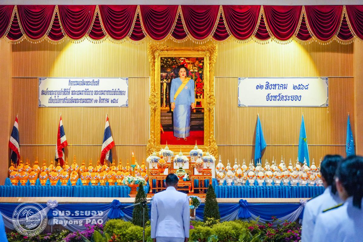 วันที่ 12 สิงหาคม 2568 เวลา 17.30 น. นายสุรินทร์ แสงทอง ปลัดองค์การบริหารส่วนจังหวัดระยอง พร้อมด้วย ข้าราชการ อบจ.ระยอง เข้าร่วมพิธีถวายเครื่องราชสักการะและวางพานพุ่ม และพิธีจุดเทียนถวายพระพรชัยมงคล เนื่องในโอกาสวันเฉลิมพระชนมพรรษา สมเด็จพระนางเจ้าสิริกิติ์ พระบรมราชินีนาถ พระบรมราชชนนีพันปีหลวง 12 สิงหาคม 2568 โดยมี นายไตรภพ วงศ์ไตรรัตน์ ผู้ว่าราชการจังหวัดระยอง เป็นประธานนำผู้เข้าร่วมพิธีวางพานพุ่มทอง-พานพุ่มเงิน เบื้องหน้าพระบรมฉายาลักษณ์ สมเด็จพระนางเจ้าสิริกิติ์ พระบรมราชินีนาถ พระบรมราชชนนีพันปีหลวง พร้อมประกอบพิธีจุดเทียนถวายพระพรชัยมงคล และกล่าวบังคมทูลถวายพระพรชัยมงคล ด้วยความจงรักภักดีและสำนึกในพระมหากรุณาธิคุณอย่างหาที่สุดมิได้ ณ หอประชุมศูนย์ราชการจังหวัดระยอง อำเภอเมืองระยอง จังหวัดระยอง
