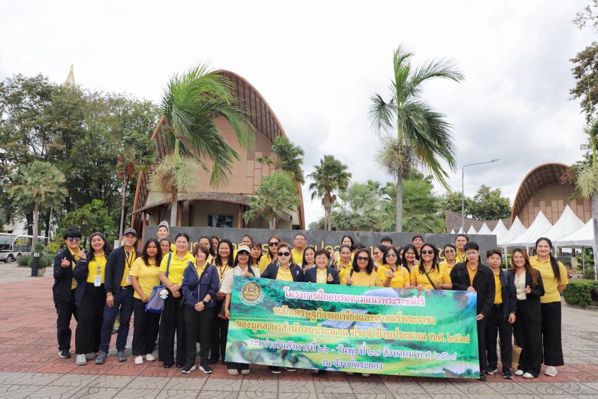ยินดีต้อนรับคณะสำนักงบประมาณส่วนกลาง กรุงเทพมหานคร โครงการฝึกอบรมตามแนวพระราชดำริ หลักเศรษฐกิจพอเพียงและศาสตร์พระราชา ประจำปีงบประมาณ พ.ศ.๒๕๖๘ เข้าสู่เมืองพระมหาชนก ซึ่งเป็นส่วนหนึ่งขององค์การบริหารส่วนจังหวัดระยอง ต้อนรับโดยเจ้าหน้าที่ เข้าสู่สถานที่แรก นั่นคือ อาคารอบรมและการเรียนรู้ อาคารปูทะเลย์มหาวิชชาลัย ซึ่งด้านในต้อนรับโดยพิธีกร กล่าวต้อนรับทุกท่าน ร่วมทำกิจกรรมแห่งความดี ชมวิดีโอที่ฉายเรื่องราวเกี่ยวกับเมืองพระมหาชนก รับฟังบรรยายแนวทางแห่งความดี โดย นายวราวุธ ปิ่นเงิน ผู้ทรงคุณวุฒิด้านปรัชญาเศรษฐกิจพอเพียง อดีตรองผู้ว่าราชการจังหวัดระยอง ถัดมากิจกรรมการกล่าวปฏิญาณ จะปกป้องสถาบันชาติ ศาสนา พระมหากษัตริย์ เพื่อความจงรักภักดี และร่วมใจกันร้องบทเพลงสรรเสริญพระบารมี ถัดมานั่งรถรางชมวิวบรรยากาศ ภายในโครงการศูนย์บริการการพัฒนาปลวกแดงตามพระราชดำริจังหวัดระยอง และเข้าชมอาคารพระมหาชนก สูง ๗๐ เมตร ซึ่งด้านในจะมีนิทรรศการที่เดียวในประเทศประเทศไทย ที่รวบรวมจิตวิญญาณน้ำพระทัยของในหลวงรัชกาลที่ ๙ และชมจุดชมวิวในช่วงเย็น วันนี้ทุกท่านจะได้รับทั้งความรู้ ตามรอยในหลวงรัชกาลที่ ๙ แนวทางแห่งความดี ความสุขที่ยั่งยืน ณ อาคารพระมหาชนก อ่างเก็บน้ำดอกกราย อำเภอปลวกแดง จังหวัดระยอง