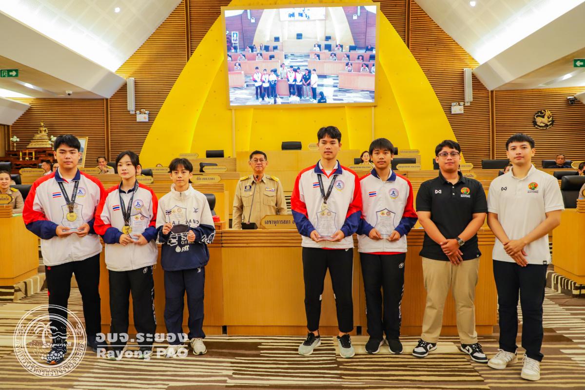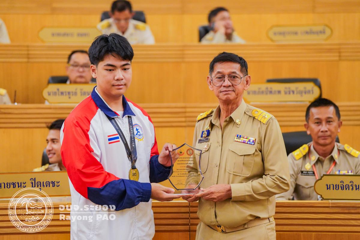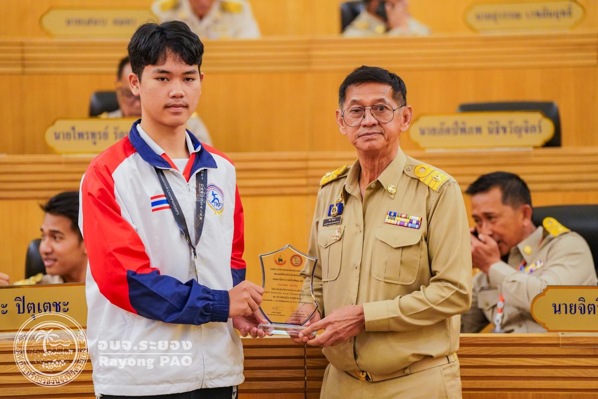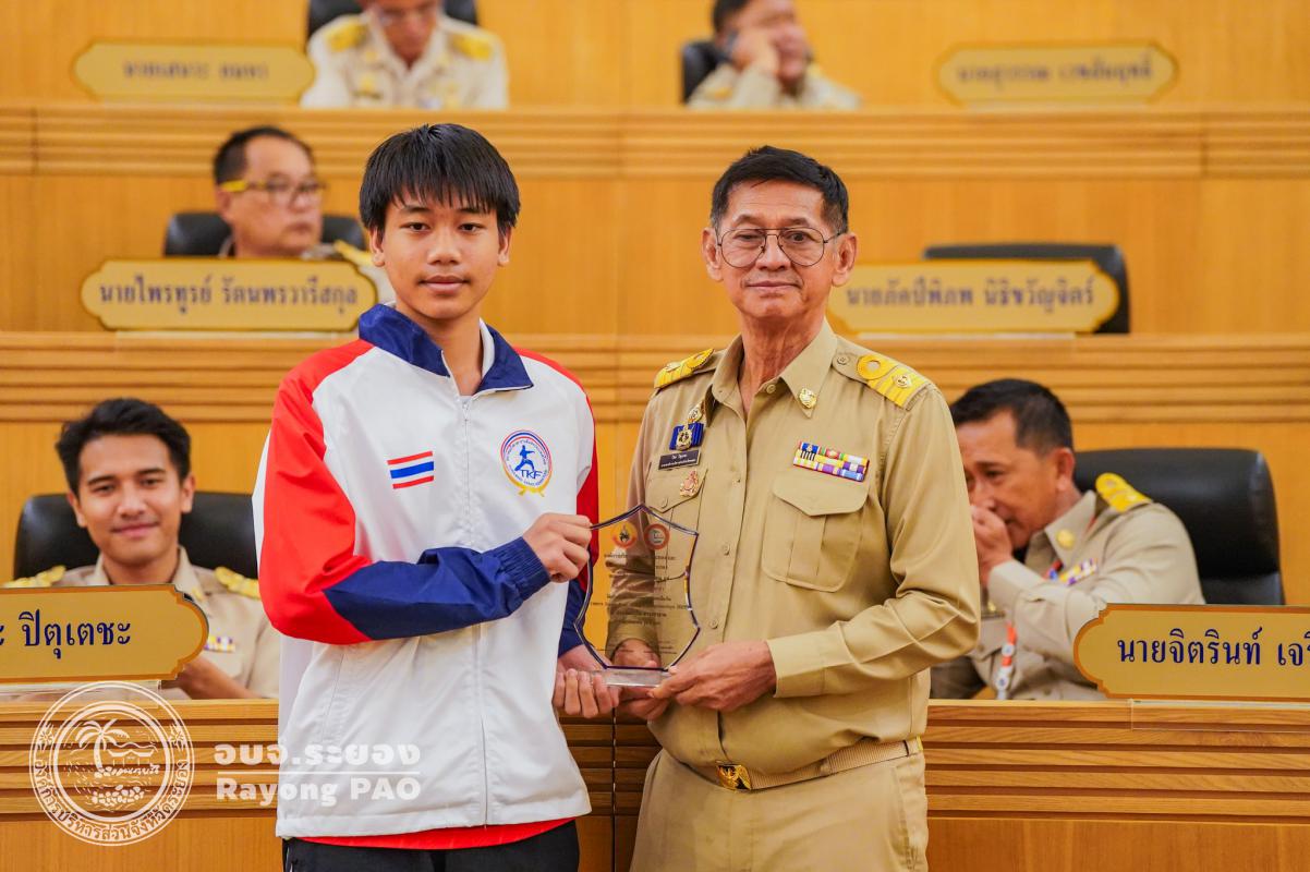 วันที่ 27 สิงหาคม 2568 เวลา 09.30 น. ณ ห้องประชุมสภาองค์การบริหารส่วนจังหวัดระยอง ชั้น 11 นายปิยะ ปิตุเตชะ นายกองค์การบริหารส่วนจังหวัดระยอง เป็นประธานในพิธีมอบโล่ประกาศเกียรติคุณให้แก่นักกีฬาคาราเต้โด และนักกีฬาเทควันโด สังกัดสมาคมกีฬาแห่งจังหวัดระยอง ซึ่งได้รับการคัดเลือกเป็นตัวแทนทีมชาติไทย เข้าร่วมการแข่งขันรายการ South East Asian Championship 2025 ณ ประเทศบรูไน ประเทศออสเตรีย และประเทศมาเลเซีย โดยมีวัตถุประสงค์เพื่อเป็นการเชิดชูเกียรติและสร้างขวัญกำลังใจให้แก่นักกีฬาที่สร้างชื่อเสียงให้กับจังหวัดระยองและประเทศไทยในเวทีระดับนานาชาติ