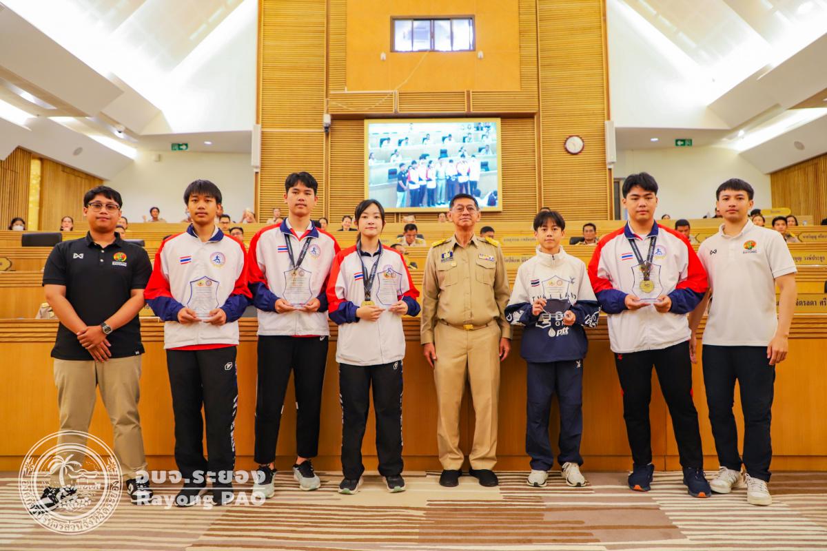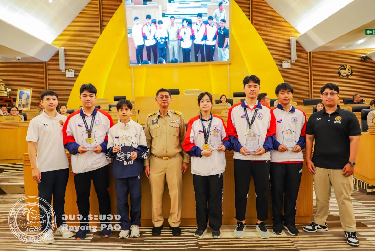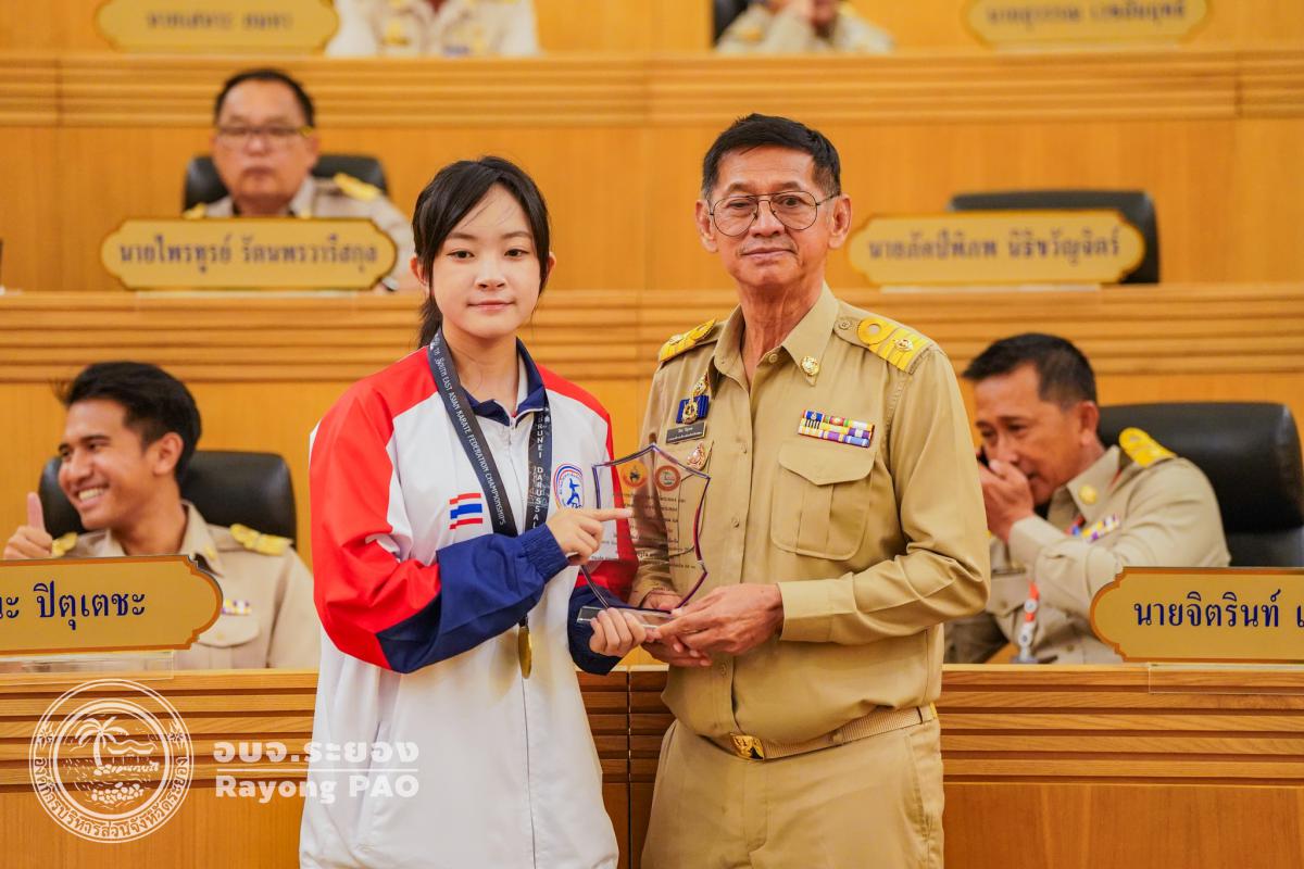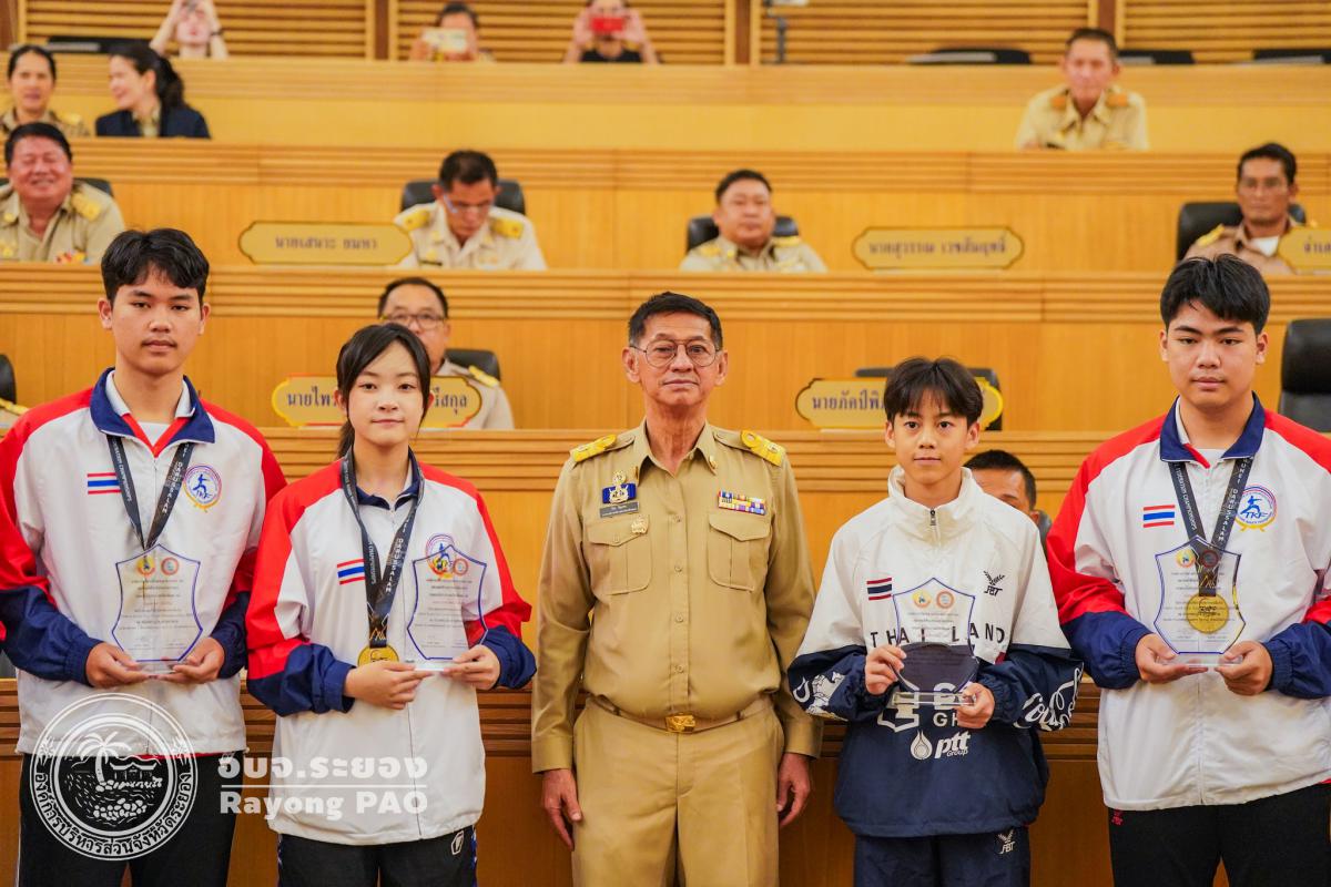 วันที่ 27 สิงหาคม 2568 เวลา 09.30 น. ณ ห้องประชุมสภาองค์การบริหารส่วนจังหวัดระยอง ชั้น 11 นายปิยะ ปิตุเตชะ นายกองค์การบริหารส่วนจังหวัดระยอง เป็นประธานในพิธีมอบโล่ประกาศเกียรติคุณให้แก่นักกีฬาคาราเต้โด และนักกีฬาเทควันโด สังกัดสมาคมกีฬาแห่งจังหวัดระยอง ซึ่งได้รับการคัดเลือกเป็นตัวแทนทีมชาติไทย เข้าร่วมการแข่งขันรายการ South East Asian Championship 2025 ณ ประเทศบรูไน ประเทศออสเตรีย และประเทศมาเลเซีย โดยมีวัตถุประสงค์เพื่อเป็นการเชิดชูเกียรติและสร้างขวัญกำลังใจให้แก่นักกีฬาที่สร้างชื่อเสียงให้กับจังหวัดระยองและประเทศไทยในเวทีระดับนานาชาติ