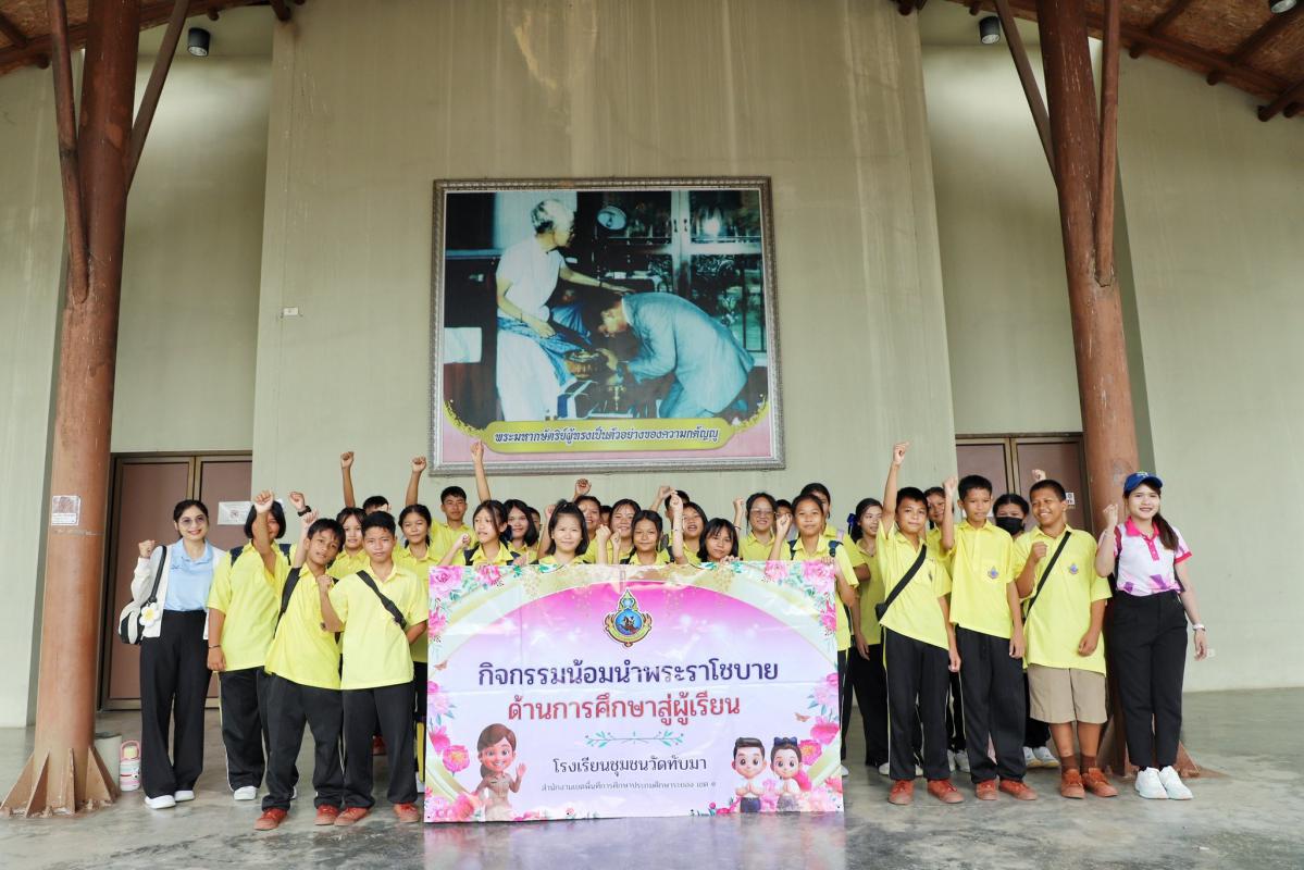 วันศุกร์ที่ ๒๖ กันยายน พ.ศ. ๒๕๖๘ เวลา ๐๙.๐๐ น. ยินดีต้อนรับคณะครู และนักเรียน ชั้นมัธยมศึกษาปีที่ ๑ โรงเรียนชุมชนวัดทับมา จังหวัดระยอง เข้าสู่เมืองพระมหาชนก ซึ่งเป็นส่วนหนึ่งขององค์การบริหารส่วนจังหวัดระยอง ต้อนรับโดยข้าราชการ เจ้าหน้าที่ที่เกี่ยวข้อง เข้าสู่สถานที่แรก นั่นคืออาคารอบรมและการเรียนรู้ อาคารปูทะเลย์มหาวิชชาลัย ต้อนรับโดยพิธีกร ให้เด็กนักเรียนร่วมทำกิจกรรมสันทนาการ สร้างสมาธิ ความสามัคคี และได้ความสนุกสนาน ควบคู่กับการทำกิจกรรมแห่งความดี การกล่าวปฏิญาณ จะปกป้องสถาบันชาติ ศาสนา พระมหากษัตริย์ เพื่อความจงรักภักดี และร่วมใจกันร้องบทเพลงสรรเสริญพระบารมี ถัดมานั่งรถรางชมวิวบรรยากาศ แวะสะพานจัมปานคร แวะฟาร์มแกะ@ดอกกราย เพื่อให้เด็กนักเรียน มีจิตใจที่อ่อนโยนเมตตาต่อสัตว์ ถัดมานั่งรถรางชมวิวบรรยากาศ สันอ่างเก็บน้ำดอกกราย ตามรอยในหลวงรัชกาลที่ ๙ บันไดแห่งความทรงจำ และที่พลาดไม่ได้การเข้าชมอาคารพระมหาชนก ที่มีนิทรรศการรวบรวมจิตวิญญาณน้ำพระทัยของในหลวงรัชกาลที่ ๙ และชมจุดชมวิวที่สวยงาม ประทับใจ ซึ่งวันนี้เด็กนักเรียนที่มาทัศนศึกษาได้ทั้งความรู้ และแนวทางคุณธรรม จริยธรรม เพื่อให้ในอนาคตมีความสุขที่ยั่งยืน ณ อาคารพระมหาชนก อ่างเก็บน้ำดอกกราย อำเภอปลวกแดง จังหวัดระยอง