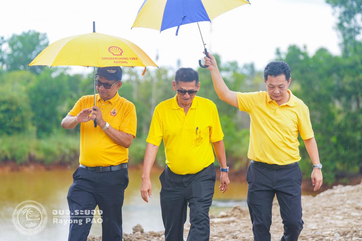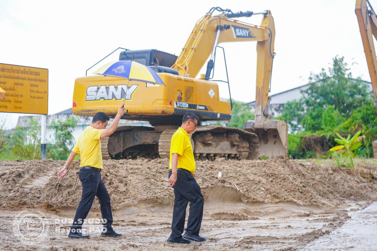 อบจ.ระยอง ลงพื้นที่ติดตามความคืบหน้าการดำเนินงานก่อสร้างคันดินกั้นน้ำเสียของ บริษัท วิน โพรเสส