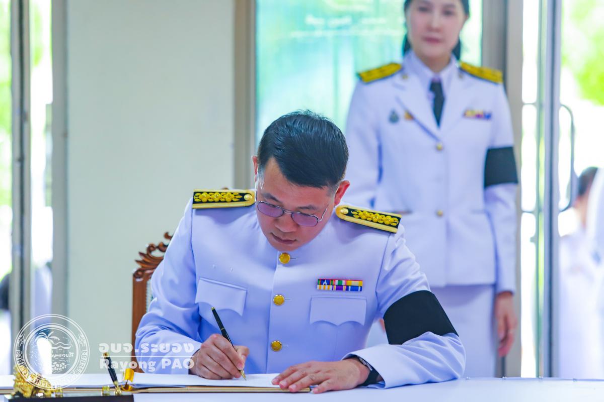 วันที่ 26 ตุลาคม 2568 เวลา 14.30 น. นายสุรินทร์ แสงทอง ปลัดองค์การบริหารส่วนจังหวัดระยอง พร้อมด้วยนางสาวธัญชนก ศรีรัตน์ รองปลัดองค์การบริหารส่วนจังหวัดระยอง ผู้อำนวยการกอง หัวหน้าส่วนราชการ ข้าราชการ และเจ้าหน้าที่ที่เกี่ยวข้อง ได้เข้าร่วมพิธีสรงน้ำพระบรมศพ และร่วมลงนามแสดงความไว้อาลัยสมเด็จพระนางเจ้าสิริกิติ์ พระบรมราชินีนาถ พระบรมราชชนนีพันปีหลวง เบื้องหน้าพระฉายาลักษณ์ ณ โถงชั้น 1 อาคารศาลากลางจังหวัดระยอง ศูนย์ราชการจังหวัดระยอง