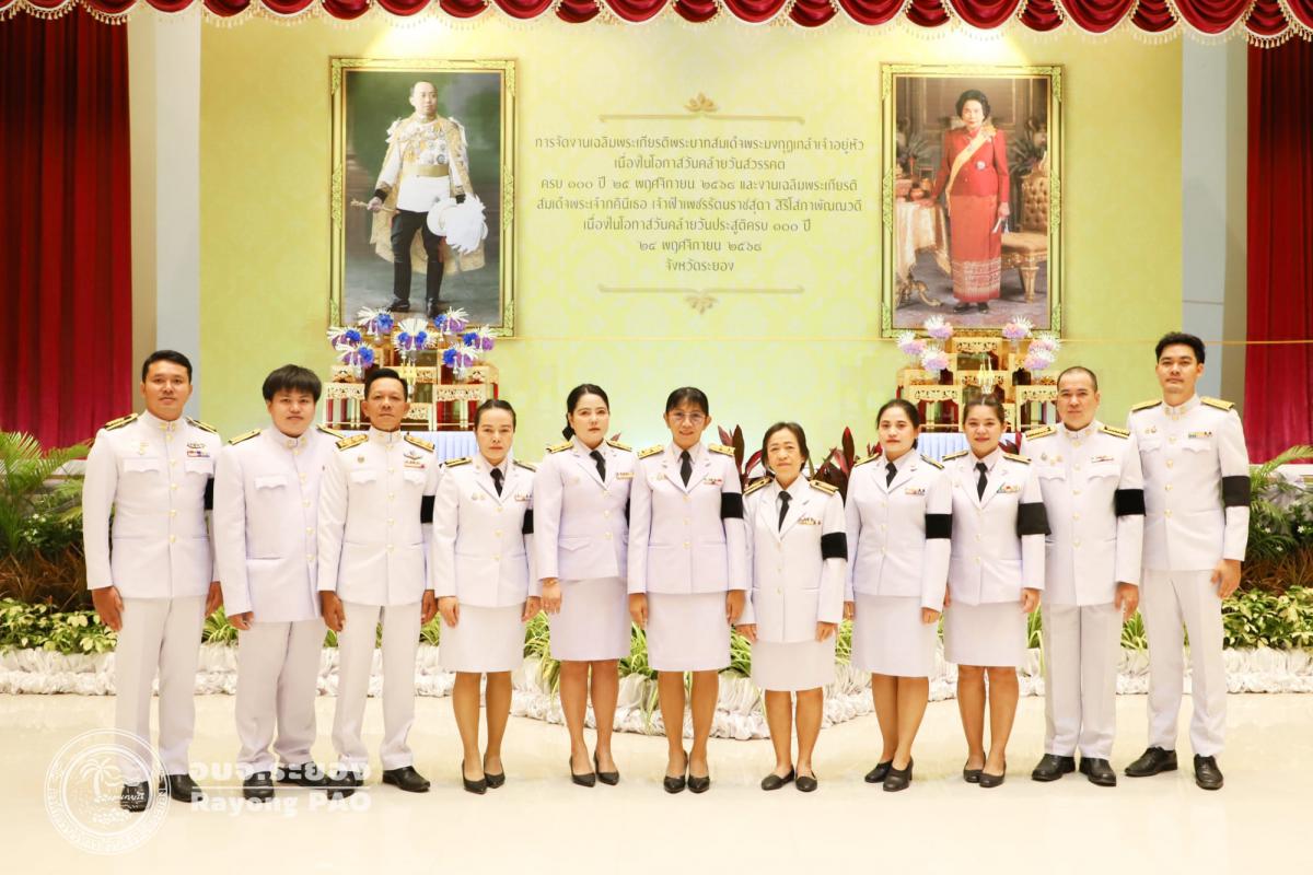 วันที่ 24 พฤศจิกายน 2568 นางสาวธัญชนก ศรีรัตน์ รองปลัดองค์การบริหารส่วนจังหวัดระยอง พร้อมด้วยข้าราชการ อบจ.ระยอง ได้เข้าร่วมพิธีวางพวงมาลา ถวายราชสักการะพระบาทสมเด็จพระมงกุฎเกล้าเจ้าอยู่หัว เนื่องในโอกาสวันคล้ายวันสวรรคตครบ 100 ปี 25 พฤศจิกายน 2568 และพิธีเจริญพระพุทธมนต์ และทำบุญตักบาตรถวายราชกุศล เฉลิมพระเกียรติสมเด็จพระเจ้าภคินีเธอ เจ้าฟ้าเพชรรัตนราชสุดา สิริโสภาพัณณวดี เนื่องในโอกาสวันคล้ายวันประสูติครบ 100 ปี 24 พฤศจิกายน 2568 โดยมีนายไตรภพ วงศ์ไตรรัตน์ ผู้ว่าราชการจังหวัดระยอง ได้ให้เกียรติเป็นประธานในพิธี นำผู้เข้าร่วมพิธีถวายความเคารพหน้าพระบรมฉายาลักษณ์ และทำบุญตักบาตรถวายราชกุศล ณ หอประชุมศูนย์ราชการจังหวัดระยอง อำเภอเมืองระยอง จังหวัดระยอง