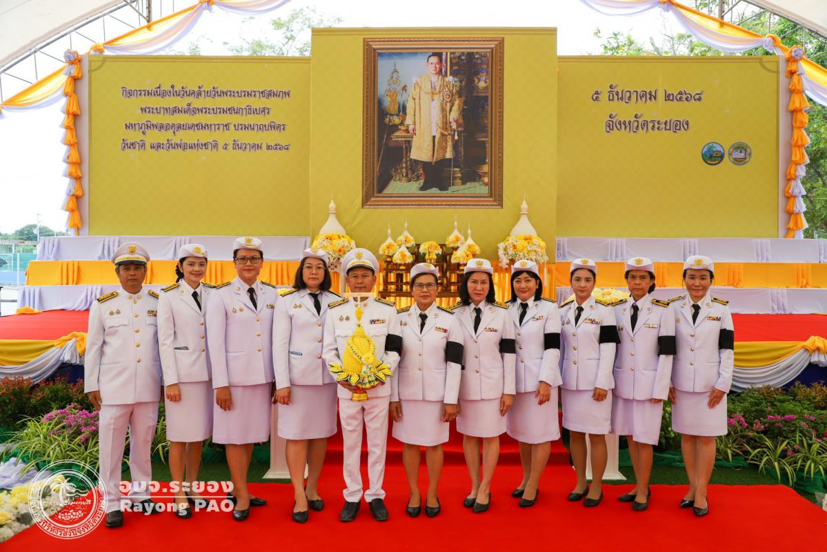 วันที่ 5 ธันวาคม 2568 เวลา 07.00 น. องค์การบริหารส่วนจังหวัดระยอง นำโดยนางนวลฉวี เสียงประเสริฐ ผู้อำนวยการกองคลัง พร้อมด้วย นางภัทรภร อุฬารวิจิตร หัวหน้าฝ่ายกิจการคณะผู้บริหาร รักษาราชการแทน เลขานุการองค์การบริหารส่วนจังหวัด และข้าราชการจากองค์การบริหารส่วนจังหวัดระยอง เข้าร่วมพิธีเจริญพระพุทธมนต์และทำบุญตักบาตรถวายพระราชกุศล พระสงฆ์และสามเณร จำนวน 89 รูป และพิธีวางพานพุ่มดอกไม้ถวายราชสักการะ หน้าพระบรมฉายาลักษณ์ พระบาทสมเด็จพระบรมชนกาธิเบศร มหาภูมิพลอดุลยเดชมหาราช บรมนาถบพิตร ณ บริเวณสนามสวนศรีเมือง อำเภอเมืองระยอง จังหวัดระยอง