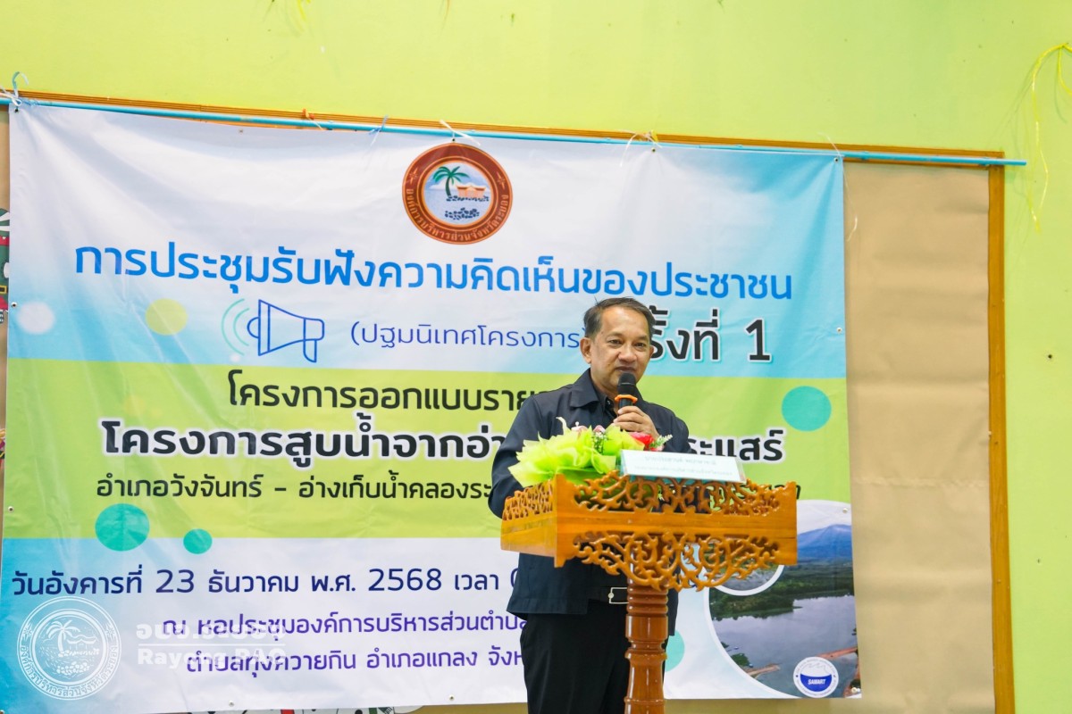 ประชุมรับฟังความคิดเห็นของประชาชน ครั้งที่ 1 (ปฐมนิเทศโครงการ) โครงการออกแบบรายละเอียด โครงการสูบน้ำจากอ่างเก็บน้ำประแสร์ อำเภอวังจันทร์ - อ่างเก็บน้ำคลองระโอก อำเภอแกลง จังหวัดระยอง