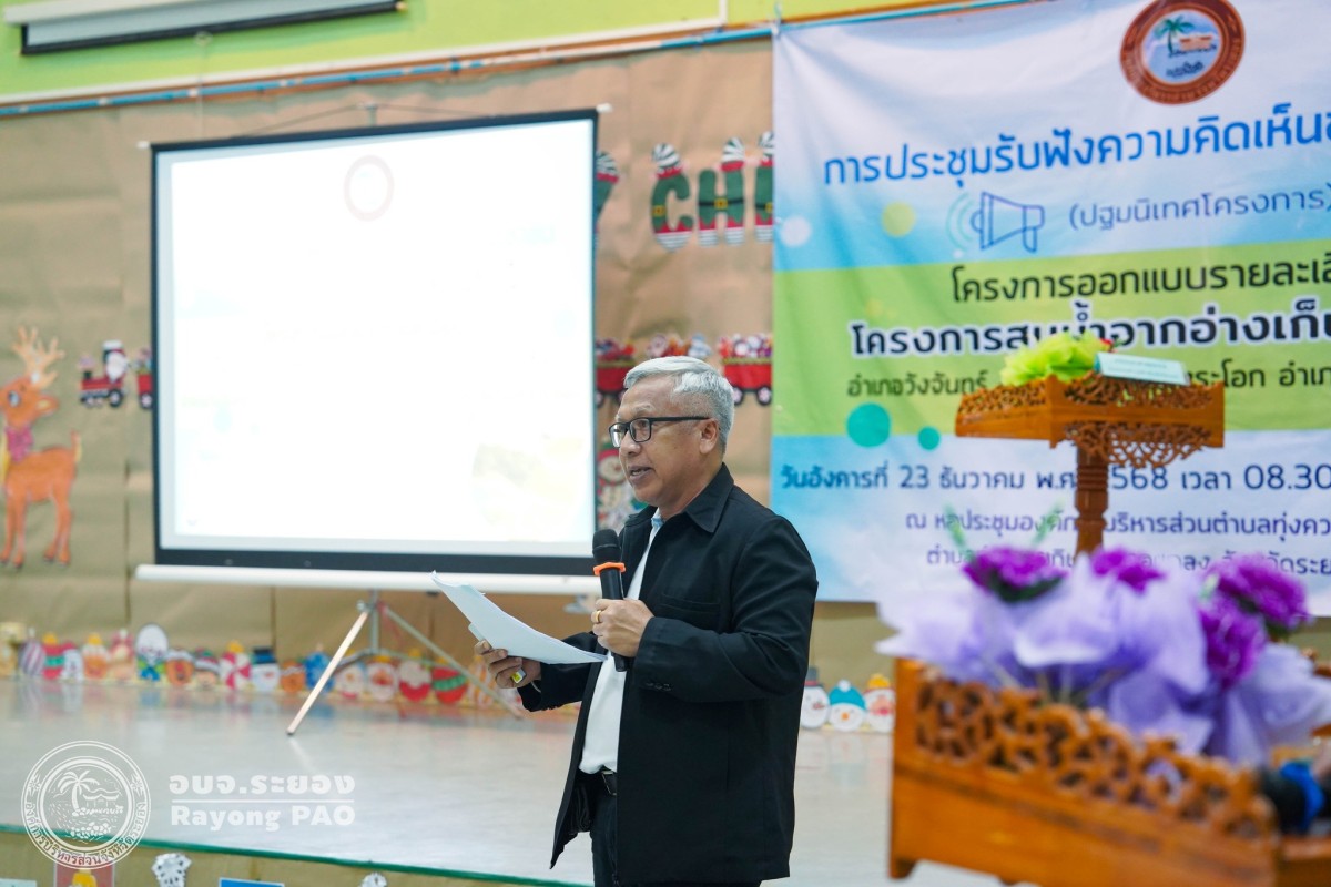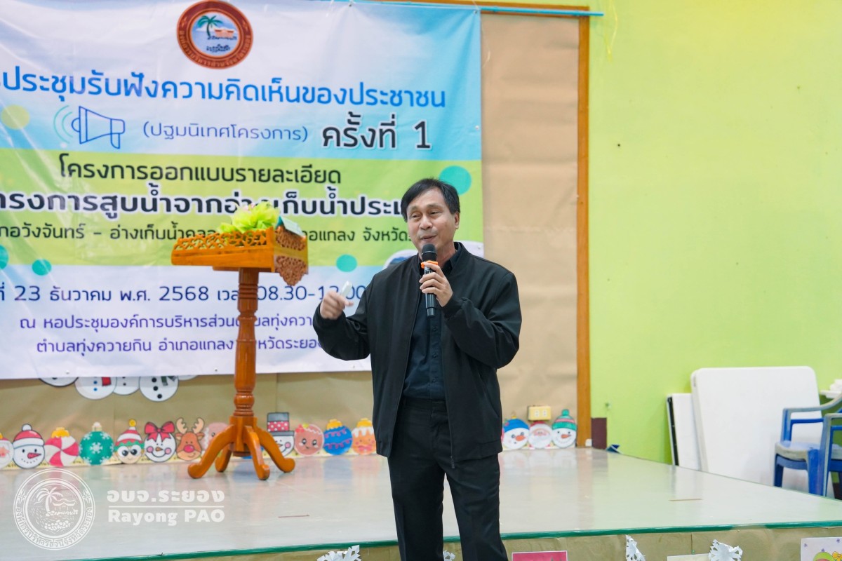 วันที่ 23 ธันวาคม 2568 เวลา 09.00 น. นายประสานต์ พฤกษาชาติ รองนายกองค์การบริหารส่วนจังหวัดระยอง(2) เป็นประธานในพิธีฯ พร้อมด้วย สมาชิกสภาองค์การบริหารส่วนจังหวัด หัวหน้าส่วนราชการ องค์กรปกครองส่วนท้องถิ่น ผู้นำชุมชน และประชาชนที่เกี่ยวข้องเข้าร่วมประชุม ณ หอประชุมองค์การบริหารส่วนตำบลทุ่งควายกิน ตำบลทุ่งควายกิน อำเภอแกลง จังหวัดระยอง