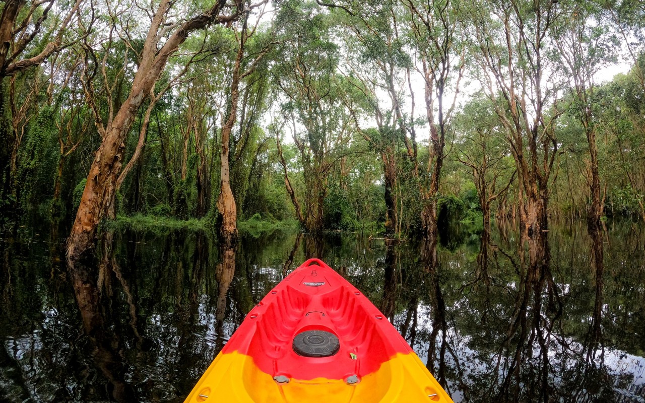 คายัคชมความอัศจรรย์ของทุ่งดอกบัว แพหญ้าหนังหมา แพหญ้าขนาดใหญ่ที่ลอยตัวอยู่บนน้ำ