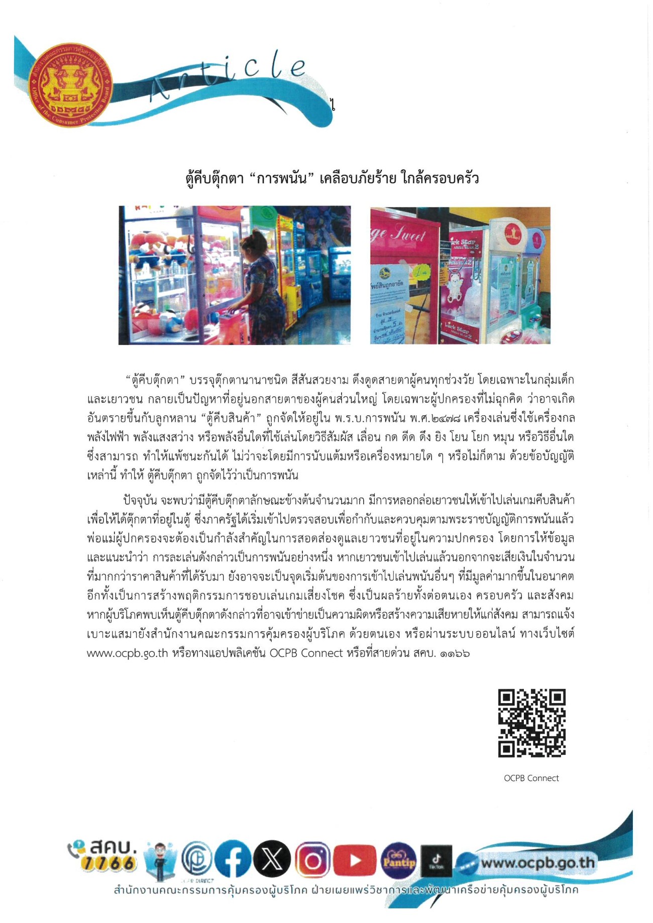 ข่าว สคบ. ด้านการคุ้มครองผู้บริโภค