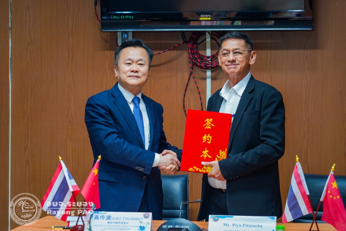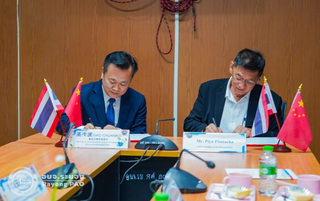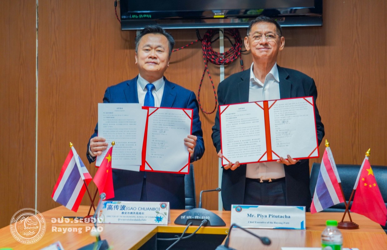 พิธีลงนามบันทึกข้อตกลง (MOU) ความเข้าใจระหว่างองค์การบริหารส่วนจังหวัดระยอง ราชอาณาจักรไทย และสำนักงานพาณิชย์เมืองไท่อัน