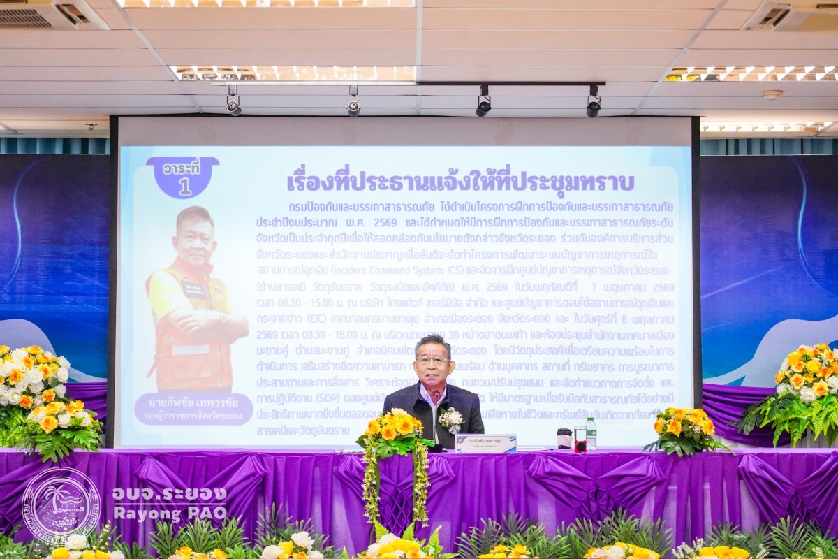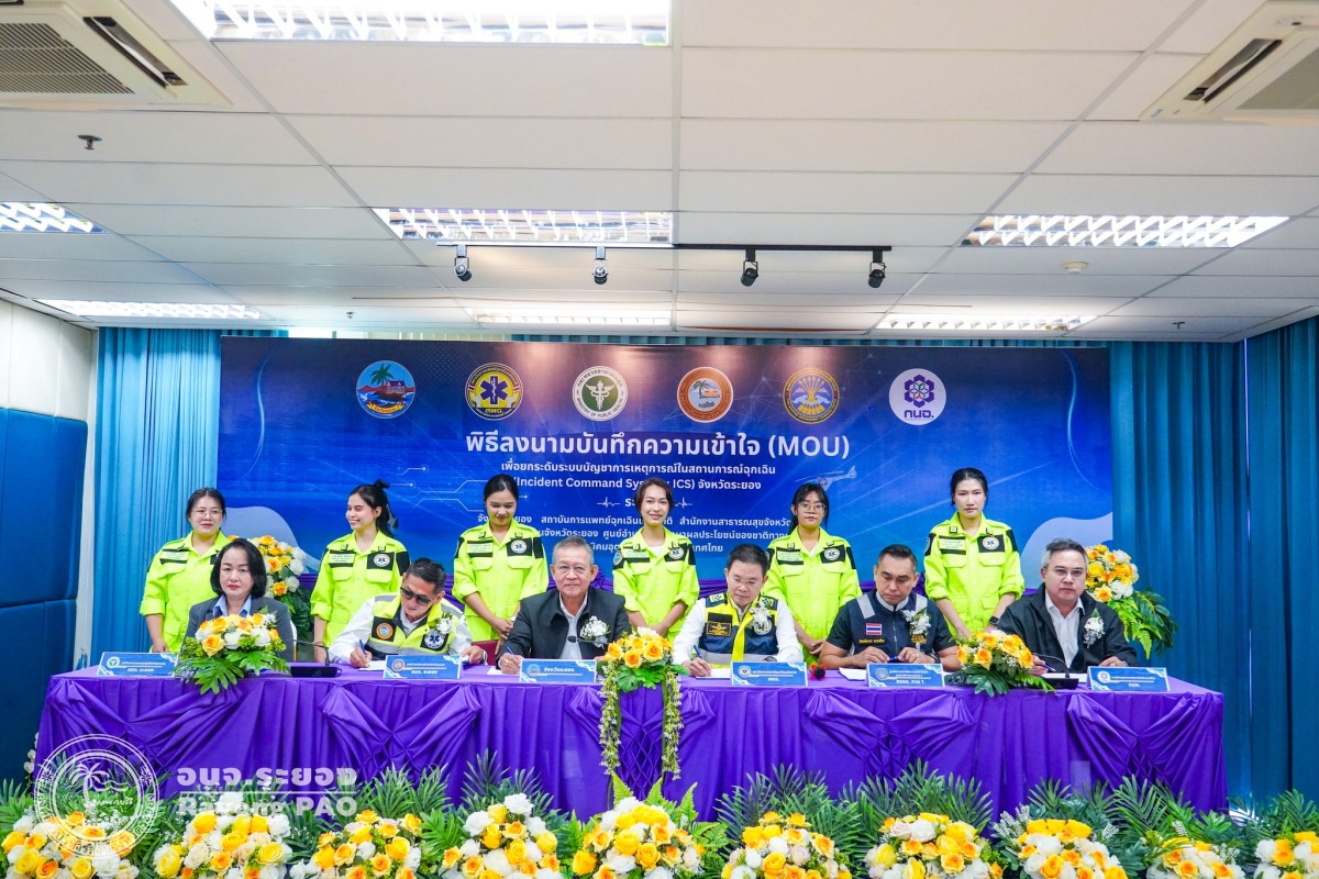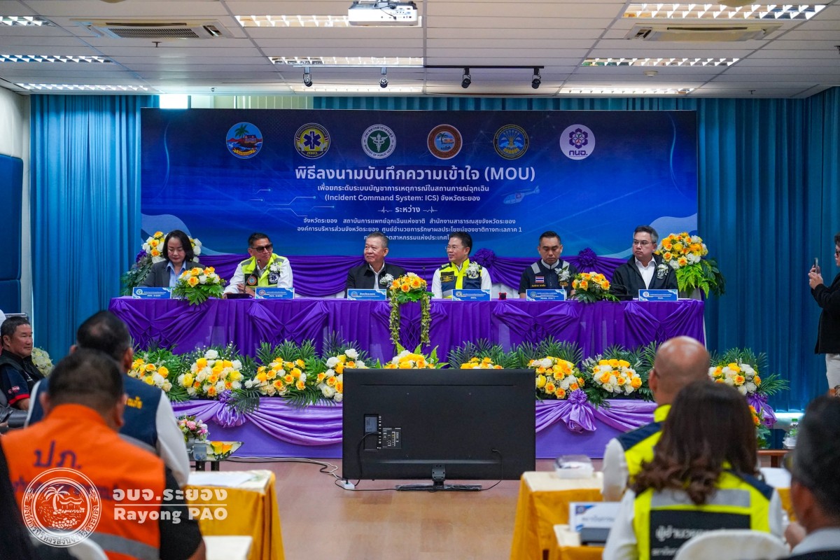วันที่ 31 มีนาคม 2569 เวลา 10.00 น. นายปิยะ ปิตุเตชะ นายกองค์การบริหารส่วนจังหวัดระยอง พร้อมด้วยคณะผู้บริหาร ได้เข้าร่วมในพิธีลงนามบันทึกความเข้าใจ (MOU) เพื่อยกระดับระบบบัญชาการเหตุการณ์ในสถานการณ์ฉุกเฉิน (Incident Command System : ICS) จังหวัดระยอง และประชุมคณะทำงานออกแบบและควบคุมการฝึกศูนย์บัญชาการเหตุการณ์จังหวัดระยอง (ด้านสารเคมี วัตถุอันตราย วัตถุระเบิด และอัคคีภัย) ประจำปี 2569 โดยได้รับเกียรติจากนายกัฬชัย เทพวรชัย รองผู้ราชการจังหวัดระยอง สำนักงานสาธารณสุขจังหวัดระยอง สถาบันการแพทย์ฉุกเฉินแห่งชาติ การนิคมอุตสาหกรรมแห่งประเทศไทย ศูนย์อำนวยการรักษาผลประโยชน์ของชาติทางทะเลภาค 1 และผู้ที่เกี่ยวข้องเข้าร่วมลงนามบันทึกความเข้าใจ (MOU) อย่างพร้อมเพรียงกัน โดยมีวัตถุประสงค์เพื่อเตรียมความพร้อมในการดำเนินการ เสริมสร้างขีดความสามารถ ทดสอบความพร้อม ด้านบุคลากร สถานที่ ทรัพยากร การบูรณาการประสานงานและการสื่อสาร วิเคราะห์จุดอ่อน/จุดแข็ง ทบทวน/ปรับปรุงแผนและจัดทำแนวทางการจัดตั้ง และการปฏิบัติงาน (SOP) ของศูนย์บัญชาการเหตุการณ์จังหวัด ให้มีมาตรฐานเพื่อรับมือกับสาธารณภัยได้อย่างมีประสิทธิภาพมากยิ่งขึ้น ตลอดจนเพื่อป้องกันและบรรเทาความเสียหายต่อชีวิต อันเกิดจากภัยสารเคมีและวัตถุอันตราย ณ ห้องประชุม 1 ชั้น 3 อบจ.ระยอง