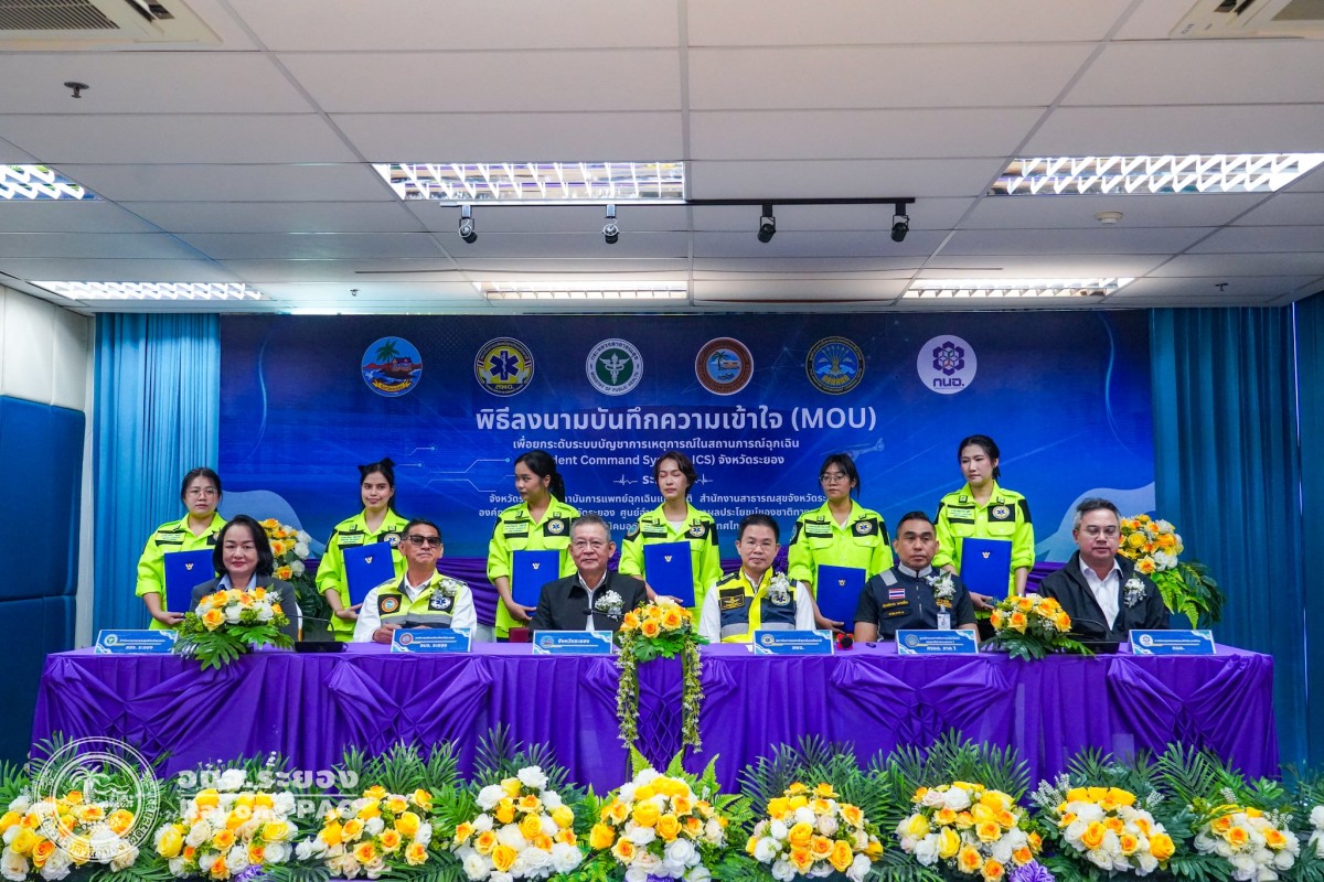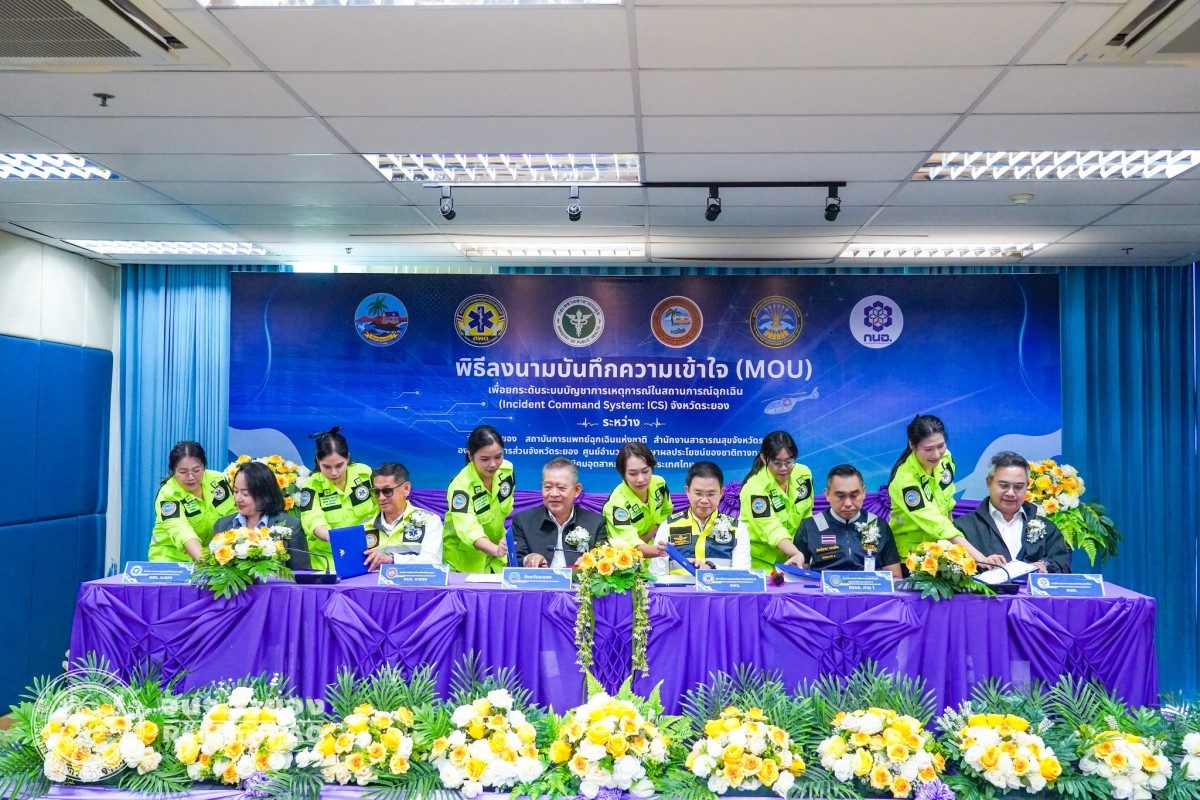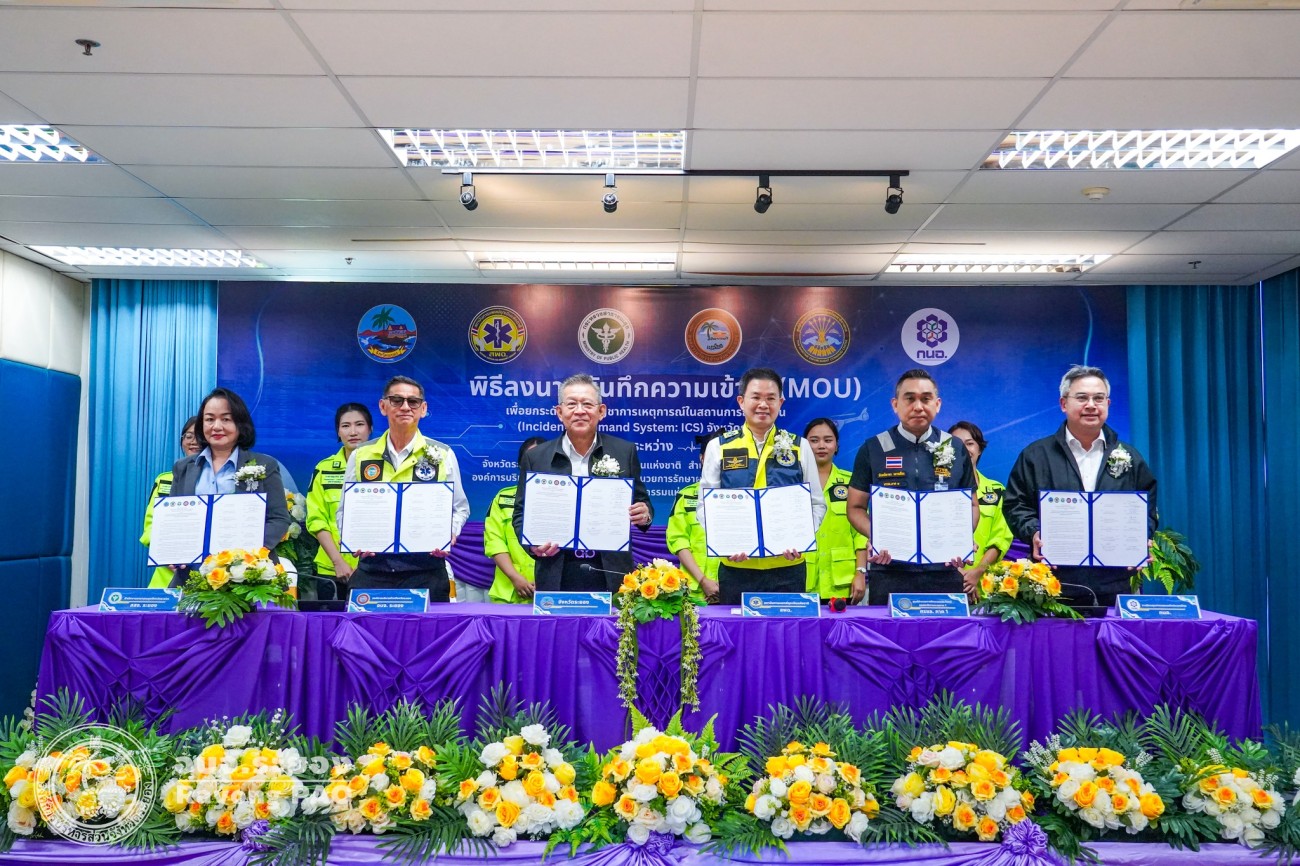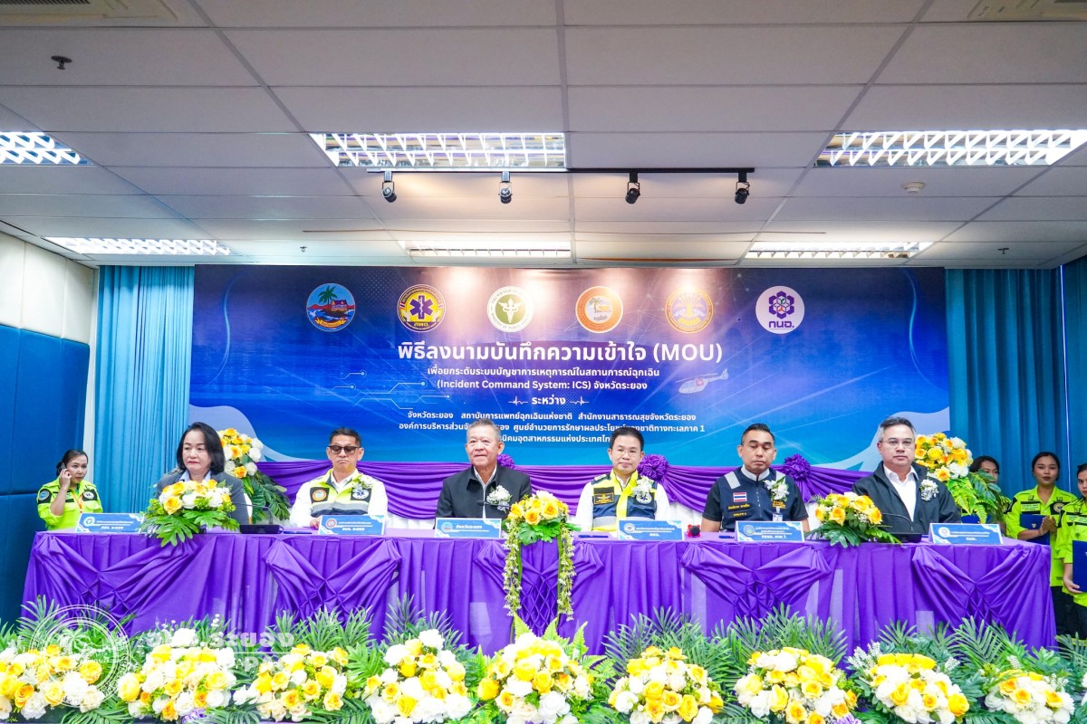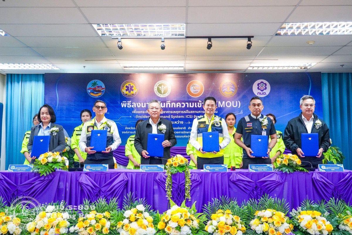 พิธีลงนามบันทึกความเข้าใจ (MOU) เพื่อยกระดับระบบบัญชาการเหตุการณ์ในสถานการณ์ฉุกเฉิน จังหวัดระยอง และประชุมคณะทำงานออกแบบและควบคุมการฝึกศูนย์บัญชาการเหตุการณ์จังหวัดระยอง ประจำปี 2569