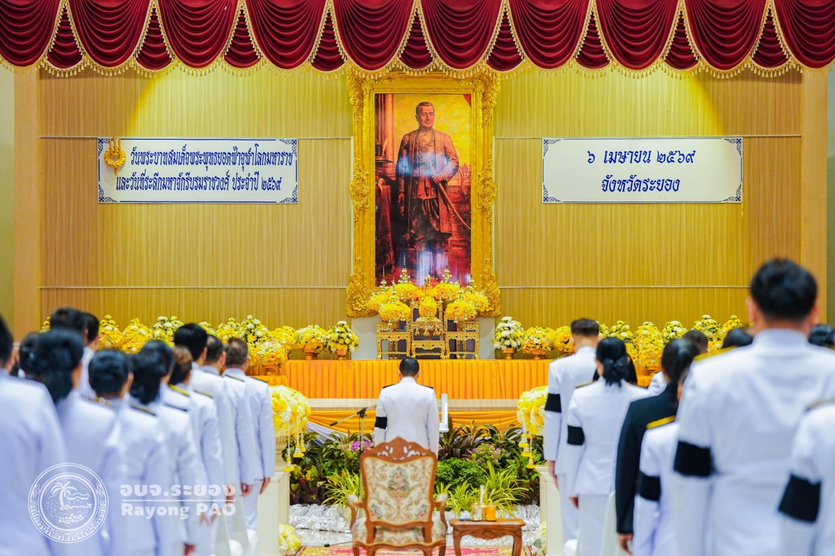 วันที่ 6 เมษายน 2569 เวลา 08.00 น. องค์การบริหารส่วนจังหวัดระยอง นำโดย นางนวลฉวี เสียงประเสริฐ ผู้อำนวยการกองคลัง พร้อมด้วย ข้าราชการองค์การบริหารส่วนจังหวัดระยอง เข้าร่วมพิธีถวายเครื่องราชสักการะพระบรมฉายาสาทิสลักษณ์พระบาทสมเด็จพระพุทธยอดฟ้าจุฬาโลกมหาราช เพื่อแสดงความจงรักภักดี และน้อมรำลึกในพระมหากรุณาธิคุณแห่งพระบรมราชวงศ์จักรี โดยมี นายไตรภพ วงศ์ไตรรัตน์ ผู้ว่าราชการจังหวัดระยอง เป็นประธานในพิธี นำผู้แทนส่วนราชการองค์กรต่างๆ กล่าวคำถวายอาศิรวาทราชสดุดี ถวายภัตตาหารและจตุปัจจัยไทยธรรมแด่พระสงฆ์ จำนวน 10 รูป ณ หอประชุมศูนย์ราชการจังหวัดระยอง อำเภอเมืองระยอง จังหวัดระยอง