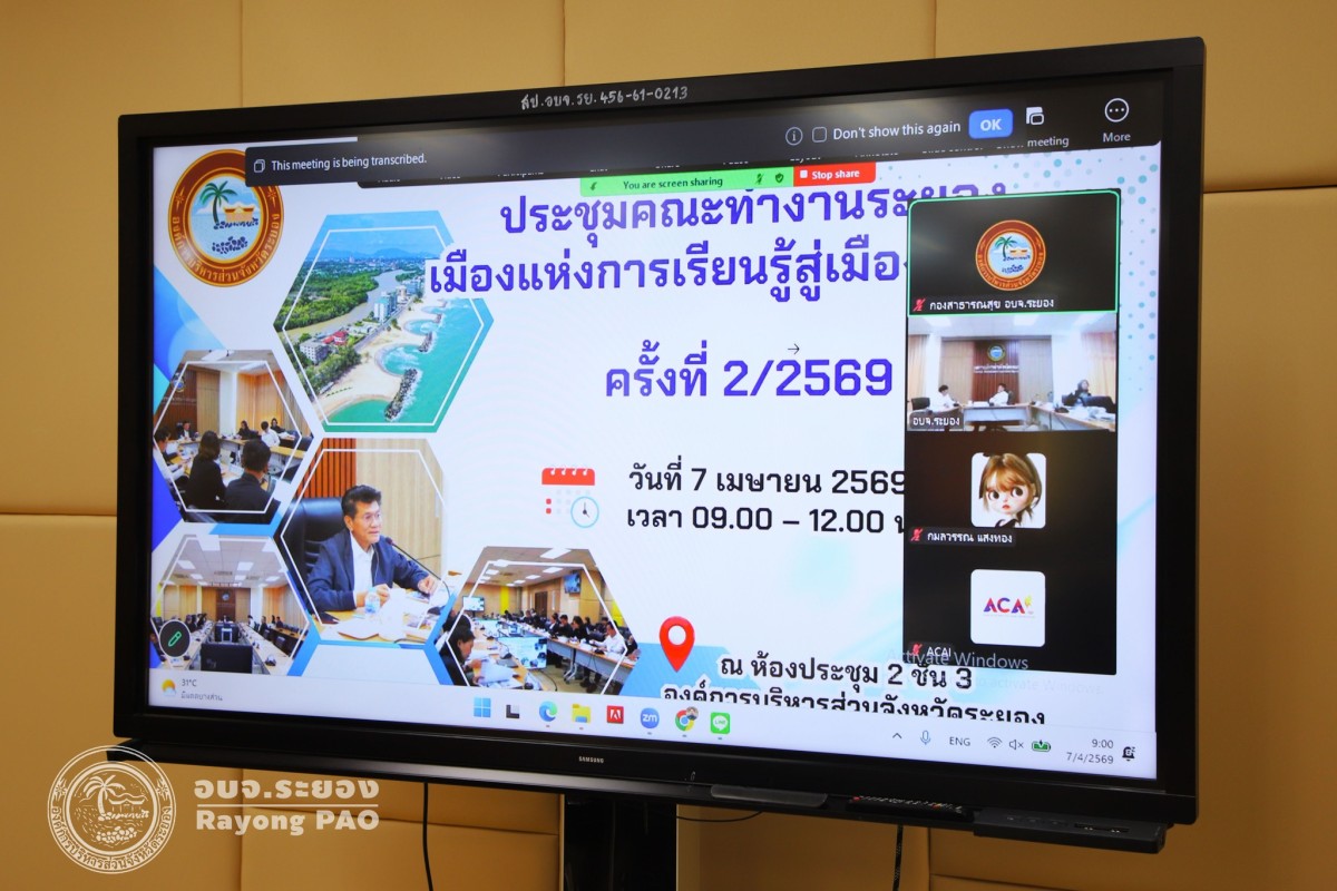 วันที่ 7 เมษายน 2569 เวลา 09.00 น. นายกิตติ เกียรติ์มนตรี รองนายกองค์การบริหารส่วนจังหวัดระยอง (1) พร้อมด้วย แพทย์หญิงสมบัติ ชุติมานุกูล เลขานุการนายกองค์การบริหารส่วนจังหวัดระยอง, นายสุนทร เหรียญภูมิการกิจ ผู้ทรงคุณวุฒิเฉพาะทางด้านการแพทย์และเวชกรรมป้องกัน, นางสาวจิตรลดา ศรีรัตนโช สมาชิกสภาฯ เขต 2 อำเภอเมืองระยอง และเจ้าหน้าที่ที่เกี่ยวข้องเข้าร่วมการประชุมอย่างพร้อมเพรียงกันโดยมีนายสาธิต ปิตุเตชะ อดีตรัฐมนตรีช่วยว่าการกระทรวงสาธารณสุข มาเป็นประธานการประชุมคณะทำงานระยอง เมืองแห่งการเรียนรู้สู่เมืองสุขภาวะครั้งที่ 2/2569 เนื่องจากองค์การบริหารส่วนจังหวัดระยอง ได้เล็งเห็นความสำคัญของการขับเคลื่อนจังหวัดระยองสู่การเป็น “เมืองแห่งการเรียนรู้ สู่เมืองสุขภาวะ” โดยใช้การเรียนรู้ตลอดชีวิตเป็นฐานในการพัฒนาศักยภาพประชาชน เสริมสร้างสุขภาวะแบบองค์รวมและยกระดับการพัฒนาเมืองให้สอดคล้องกับบริบทสังคมร่วมสมัย รวมทั้งเชื่อมโยงกับเครือข่ายความร่วมมือทั้งในประเทศและต่างประเทศเพื่อให้การพัฒนาเมืองเป็นไปอย่างมีทิศทาง ชัดเจน และต่อเนื่อง ณ ห้องประชุม 2 ชั้น 3 อบจ.ระยองและในรูปแบบออนไลน์ผ่านระบบ Zoom Meeting