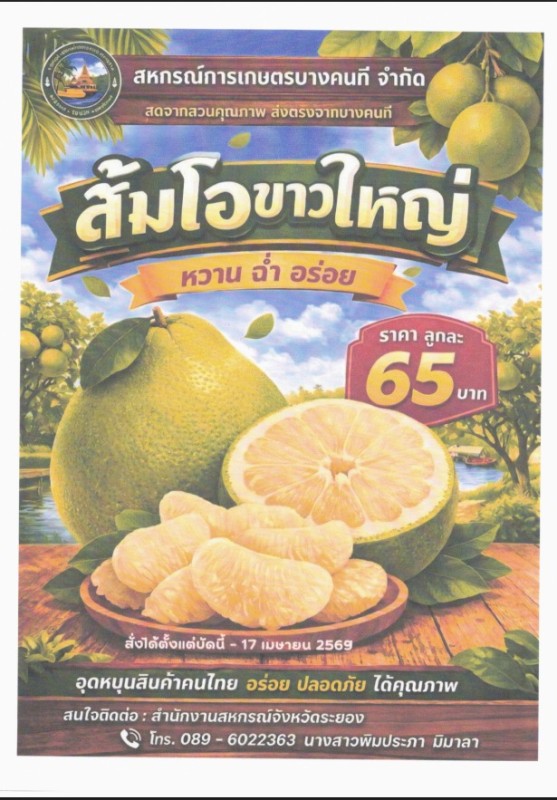 ประชาสัมพันธ์ การจำหน่ายส้มโอพันธุ์ขาวใหญ่ของสหกรณ์การเกษตรบางคนที จำกัด