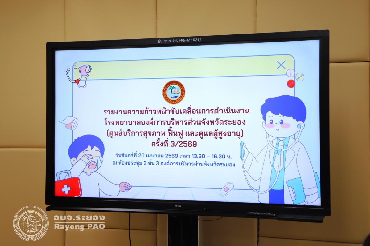 วันที่ 20 เมษายน 2569 เวลา 13:30 น. นายกิตติ เกียรติ์มนตรี รองนายกองค์การบริหารส่วนจังหวัดระยอง (1) เป็นประธานในการประชุมฯ พร้อมด้วยแพทย์หญิงสมบัติ ชุติมานุกูล เลขานุการนายกองค์การบริหารส่วนจังหวัดระยอง, นายแพทย์สุนทร เหรียญภูมิการกิจ ผู้ทรงคุณวุฒิเฉพาะด้านการแพทย์และเวชกรรมป้องกัน, นายแพทย์ชัยวัฒน์ จัตตุพร ผู้ทรงคุณวุฒิเฉพาะทางด้านการแพทย์และระบบประกันสุขภาพ, นางสาวธัญชนก ศรีรัตน์ รองปลัดองค์การบริหารส่วนจังหวัดระยอง, นายสุริยะ ศิริวัฒน์ ผู้อำนวยการกองสาธารณสุข เจ้าหน้าที่ที่เกี่ยวข้องกองสาธารณสุข กองช่าง และนักวิชาการคอมพิวเตอร์ ได้เข้าร่วมประชุมรายงานความก้าวหน้าขับเคลื่อนการดำเนินงานโรงพยาบาลองค์การบริหารส่วนจังหวัดระยอง(ศูนย์บริการสุขภาพ ฟื้นฟู และดูแลผู้สูงอายุ) ครั้งที่ 3/2569 เพื่อติดตามผลการดำเนินงาน และร่วมพิจารณาปัญหาอุปสรรค พร้อมทั้งกำหนดแนวทางการแก้ปัญหาให้เป็นไปด้วยความเรียบร้อย และทันต่อกำหนดการเปิดให้บริการ ณ ห้องประชุม 2 ชั้น 3 องค์การบริหารส่วนจังหวัดระยอง