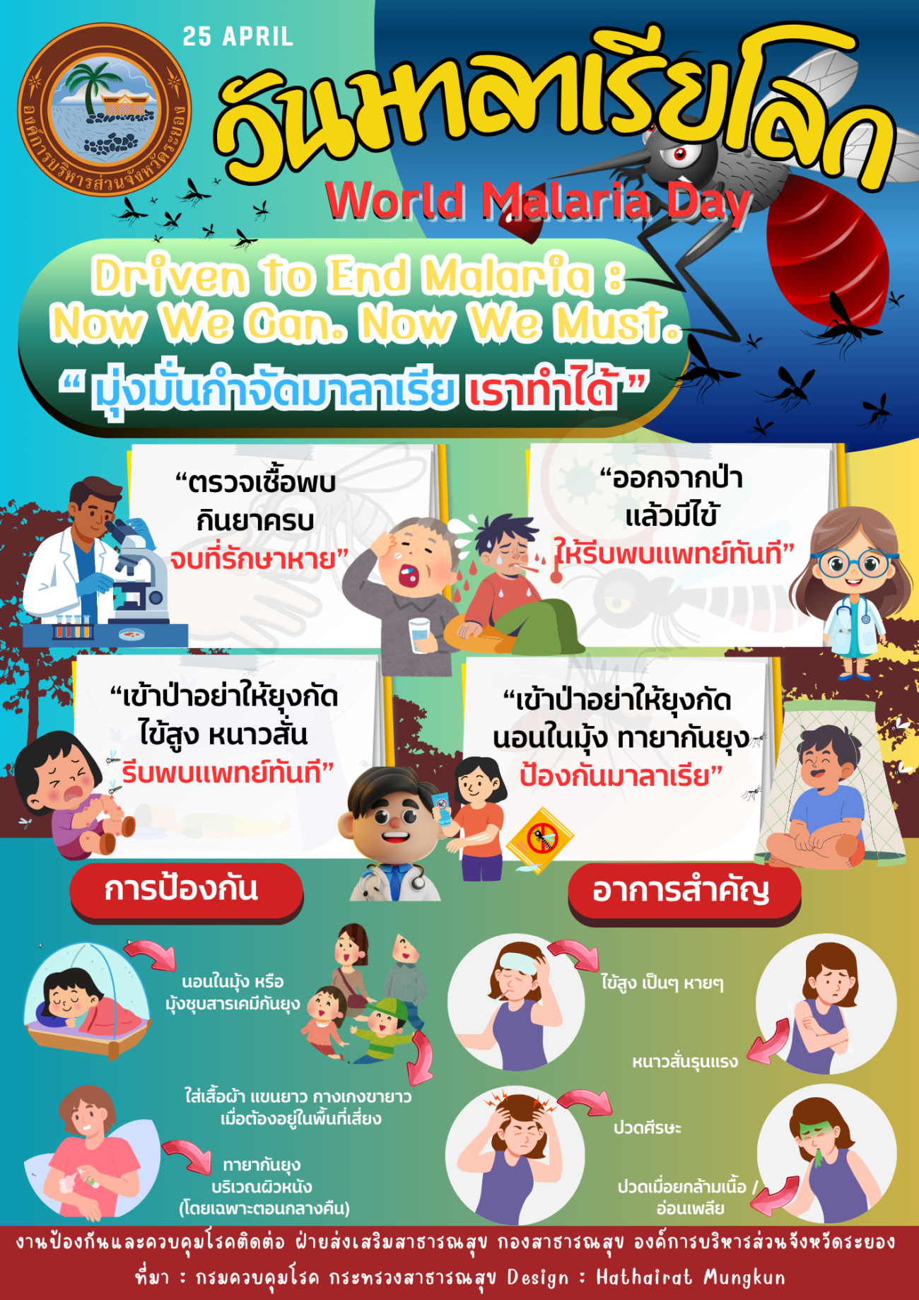 ด้วยองค์การอนามัยโลกกำหนดให้วันที่ ๒๕ เมษายน ของทุกปี เป็นวันมาลาเรียโลก (WMD) เพื่อสร้างความตระหนักและเน้นย้ำถึงความพยายามระดับโลกในการต่อต้านโรคมาลาเรียทั่วโลก มีประชากร ๓.๓ พันล้านคน ใน ๑๐๖ ประเทศ ที่มีความเสี่ยงต่อโรคมาลาเรีย ในปี ๒๕๕๕ โรคมาลาเรียทำให้มีผู้เสียชีวิตประมาณ ๖๒๗,๐๐๐ ราย ส่วนใหญ่เป็นเด็กในแอฟริกา เอเชียละตินอเมริกาและตะวันออกกลางและบางส่วนของยุโรปก็ได้รับผลกระทบเช่นกัน วันมาลาเรียโลกเกิดขึ้นจากความพยายามที่เกิดขึ้นทั่วทวีปแอฟริกาเพื่อรำลึกถึงวันมาลาเรียแห่งแอฟริกา วันมาลาเรียโลกเป็นหนึ่งใน ๑๑ แคมเปญสาธารณสุขระดับโลก อย่างเป็นทางการ ที่องค์การอนามัยโลก (WHO) กำหนดไว้ในปัจจุบันร่วมกับวันสุขภาพโลกวันผู้บริจาคโลหิตโลก สัปดาห์การสร้างภูมิคุ้มกันโลก สัปดาห์การตระหนักรู้เรื่องยาต้านจุลชีพ ความปลอดภัยของผู้ป่วยโลก วันวัณโรคโลก วันโรคชากัสโลก วันงดสูบบุหรี่โลก วันตับอักเสบโลก และวันเอดส์โลก จากรายงานโรคมาลาเรียโลกฉบับล่าสุด พบว่าในปี ๒๕๕๘ มีผู้เสียชีวิตจากโรคมาลาเรียทั่วโลกถึง ๔๒๙,๐๐๐ ราย และมีผู้ป่วยรายใหม่ ๒๑๒ ล้านราย อัตราการเกิดผู้ป่วยโรคมาลาเรียรายใหม่ลดลง ๒๑ เปอร์เซ็นต์ทั่วโลก ระหว่างปี ๒๕๕๓ ถึง ๒๕๕๘ และอัตราการเสียชีวิตจากโรคมาลาเรียลดลง ๒๙ เปอร์เซ็นต์ในช่วงเวลาเดียวกัน ในแอฟริกาใต้ทะเลทรายซาฮารา อัตราการเกิดโรคและอัตราการเสียชีวิตลดลง ๒๑ เปอร์เซ็นต์และ ๓๑ เปอร์เซ็นต์ ตามลำดับ โดยในปี พ.ศ. ๒๕๖๙ มีคำขวัญวันมาลาเรียโลก คือ การรณรงค์ (Driven to End Malaria : Now We Can. Now We Must) “มุ่งมั่นกำจัดมาลาเรีย เราทำได้” (ข้อมูล : กรมควบคุมโรค กระทรวงสาธารณสุข) และสถานการณ์โรคไข้มาลาเรียจังหวัดระยอง ปี พ.ศ. ๒๕๖๙ ข้อมูล ณ วันที่ ๑๘ เมษายน ๒๕๖๙ พบผู้ป่วยสะสม จำนวน ๑๓๑ ราย มีอัตราป่วยร้อยละ ๐.๑๗ ต่อพันประชากร เป็นเพศชาย จำนวน ๙๒ ราย และเพศหญิง จำนวน ๓๙ ราย อาชีพเสี่ยงส่วนใหญ่ ร้อยละ ๗๔ คือ กรีดยาง โดยอำเภอที่มีอัตราป่วยสูง ๓ อันดับแรก ได้แก่ อำเภอวังจันทร์ อำเภอบ้านค่าย และอำเภอปลวกแดง ตามลำดับ (ที่มา: สำนักงานสาธารณสุขจังหวัดระยอง) รายละเอียดปรากฏตามเอกสารที่แนบมาพร้อมนี้