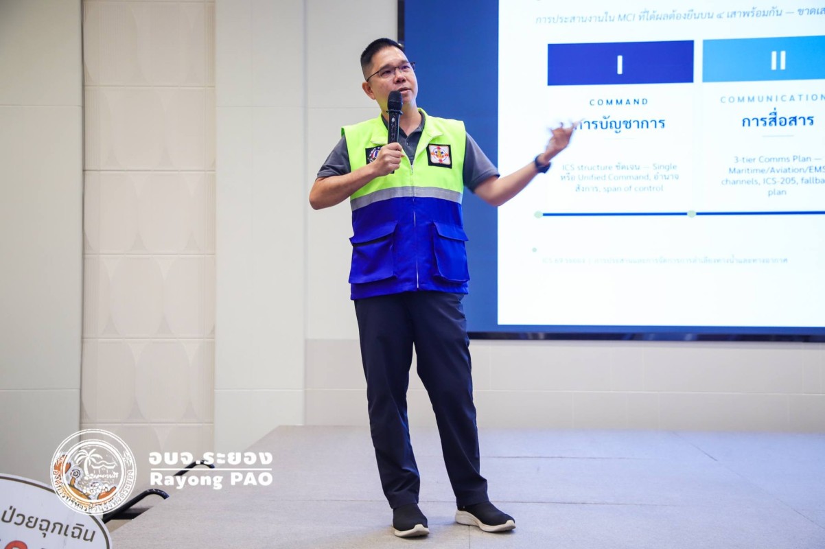 วันที่ 27 เมษายน 2569 เวลา 09.00 น. ณ โรงแรมโกลเด้น ซิตี้ ระยอง ศูนย์รับแจ้งเหตุและจ่ายงานการแพทย์ฉุกเฉิน 1669 อบจ.ระยอง จัด “โครงการพัฒนาระบบบัญชาการเหตุการณ์ในสถานการณ์ฉุกเฉิน (Incident Command System : ICS)” โดยแบ่งการถอดบทเรียนออกเป็น 3 วันวันแรกจะเป็นการฝึกอบรมภาคทฤษฎี วันที่ 2 (28 เมษายน 2569) กิจกรรมกลุ่ม (Role Play) และวันที่ 3 (29 เมษายน 2569) กิจกรรมอภิปรายกลุ่ม “การฝึกซ้อมแผนในสถานการณ์อุบัติเหตุหมู่ และสาธารณภัย รูปแบบบนโต๊ะ (Table top Exercise: TTX)”