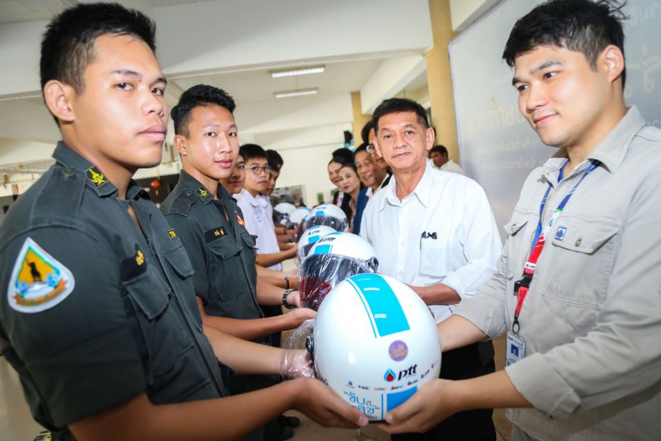 พิธีรับมอบหมวกกันน็อค จำนวน 100 ใบ จากขนส่งจังหวัดระยอง และ กลุ่ม ปตท