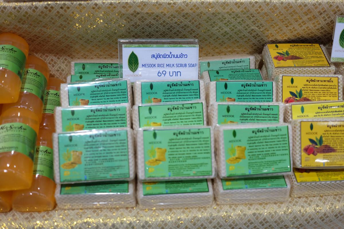 สินค้าตัวอย่างเช่น น้ำมันนวดสมุนไพร ไว้ทาบริเวณที่ปวดเมื่อยกล้ามเนื้อ ช่วยให้ผ่อนคลาย ประกอบด้วยสมุนไพรหลายชนิด เช่น น้ำมันกฤษณา น้ำมันระกำ น้ำมันงา เถาวัลย์เปรียง เถาเอ็นอ่อน ขิง ข่า ตะไคร้ ตำลึง ธูปกฤษณา ทำจากผงกฤษณากลั่นแล้ว ปลอดสารเคมี ปลอดสารก่อมะเร็ง นอกจากนี้ยังบำรุงระบบหายใจ ธาตุลมในร่างกาย สบู่กฤษณาน้ำนมข้าวหอมมะลิ ช่วยลดฝ้า กระ จุดด่างดำ ให้จางลงอย่างเป็นธรรมชาติ สบู่กฤษณาเพียวคาร์บอน ลดสิวเสี้ยน สิวอักเสบ และความมันบนใบหน้า นอกจากนี้ยังมีสบู่ขัดผิว ครีมเซรั่ม แชมพูสมุนไพร ครีมนวดผม