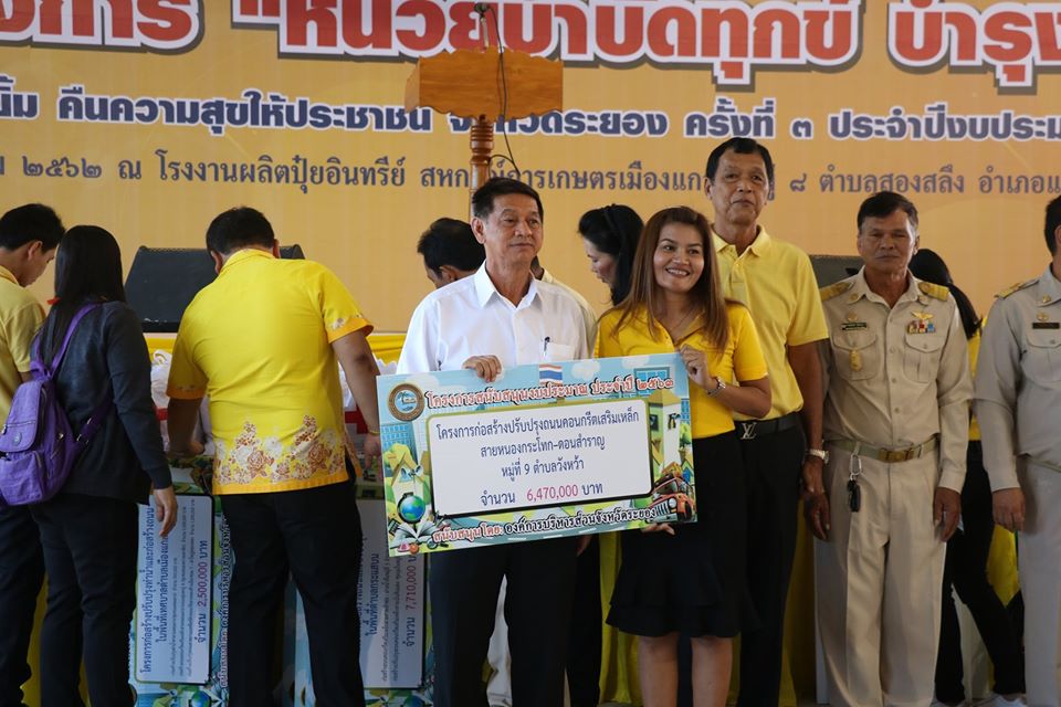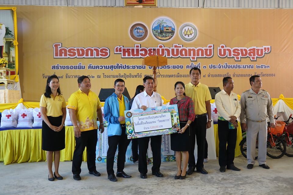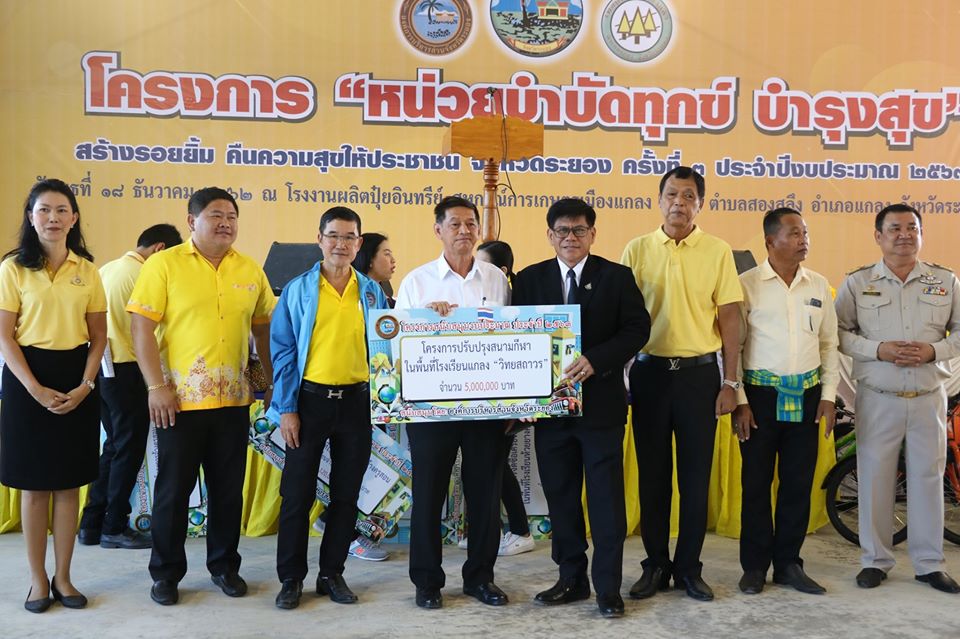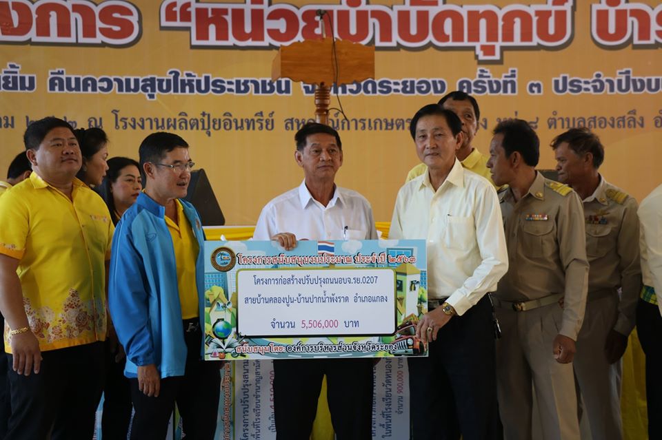 โดยมีนายยุทธพล องอาจอิทธิชัย รองผู้ว่าราชการจังหวัดระยอง เป็นประธานเปิดโครงการ พร้อมด้วย นายปิยะ ปิตุเตชะ นายกองค์การบริหารส่วนจังหวัดระยอง ,สมาชิกสภาองค์การบริหารส่วนจังหวัดระยอง ,หัวหน้าส่วนราชการ ,องค์กรปกครองส่วนท้องถิ่น และหน่วยงานต่างๆในจังหวัดระยอง เข้าร่วมโครงการ ณ โรงงานผลิตปุ๋ยอินทรีย์ สหกรณ์การเกษตรเมืองแกลง หมู่ที่ 8 ตำบลสองสลึง อำเภอแกลง จังหวัดระยอง โดยกิจกรรมภายในงานมีการประชาสัมพันธ์การรับชำระภาษีบำรุง อบจ./น้ำมัน/ก๊าซปิโตรเลียม , คลินิกเซ็นเตอร์(รับฟังปัญหาของประชาชน) กิจกรรมเล่นเกมส์ตอบปัญหา แจกของรางวัล, บริการตรวจสุขภาพ คัดกรองความดัน เบาหวาน, ให้ความรู้และคำแนะนำเรื่องยาเสพติด, จำหน่ายสินค้า OTOP, ตรวจวัดสายตา, แจกแว่นสายตายาวฟรี, แจกปุ๋ยมูลไส้เดือน, จำหน่ายไข่ไก่ราคาถูก, แจกพันธุ์ไม้, แจกพันธุ์ปลา, บริการตรวจสุขภาพของหน่วยแพทย์เคลื่อนที่ พอสว นอกจากนี้ยังมีกิจกรรมจากหน่วยงานราชการมาให้บริการมากมาย ซึ่งประชาชนในพื้นที่และใกล้เคียงต่างให้ความสนใจเข้ามาร่วมงานเป็นจำนวนมาก