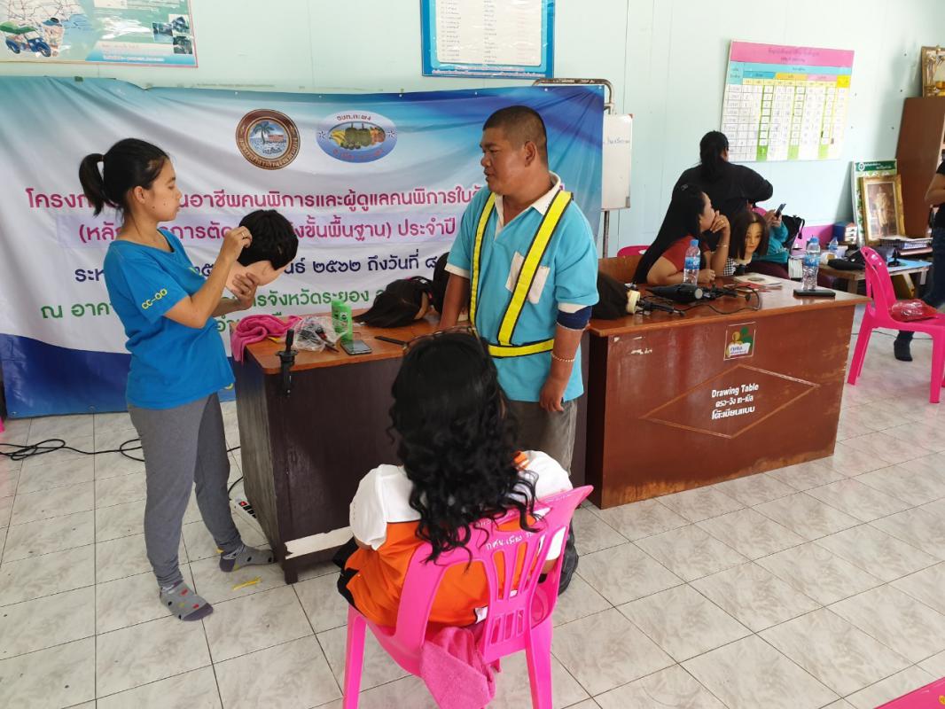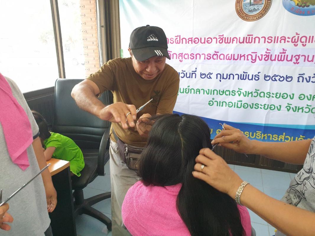 โครงการฝึกอาชีพคนพิการและผู้ดูแลคนพิการในจังหวัดระยอง (หลักสูตรตัดผมหญิงขั้นพื้นฐาน)