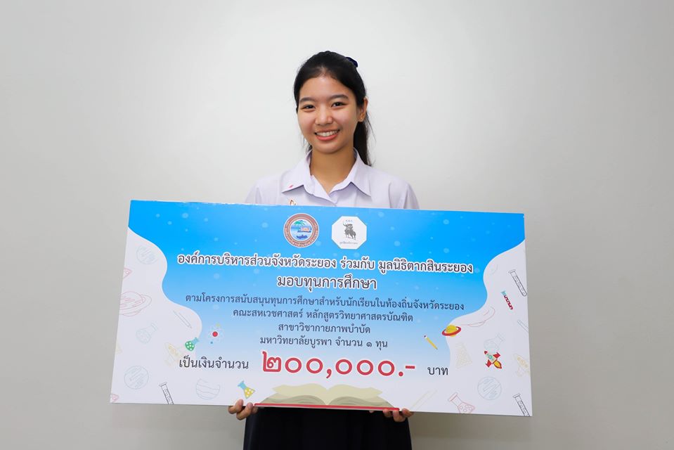 วันที่ 26 มิถุนายน 2563 เวลา 10.00 น. ณ ห้องประชุม 1 ชั้น 8 อบจ.ระยอง องค์การบริหารส่วนจังหวัดระยอง ร่วมกับ มูลนิธิตากสินระยอง มอบทุนการศึกษา ตามโครงการสนับสนุนทุนการศึกษา หลักสูตรวิทยาศาสตรบัณฑิต สาขาวิชากายภาพบำบัด มหาวิทยาลัยบูรพา จำนวน 1 ทุน เป็นจำนวนเงิน 200,000 บาท โดยมี นายปิยะ ปิตุเตชะ นายกองค์การบริหารส่วนจังหวัดระยอง พร้อมคณะผู้บริหาร หัวหน้าส่วนราชการ ผู้อำนวยการกอง และมูลนิธิตากสินระยอง ร่วมมอบทุนการศึกษา ให้กับ นางสาววรีพร ตองติดรัมย์ นักเรียนโรงเรียนเฉลิมพระเกียรติสมเด็จพระศรีนครินทร์ ระยองในพระราชูปถัมภ์สมเด็จพระเทพรัตนราชสุดาฯ สยามบรมราชกุมารี ซึ่งได้สมัครเข้าร่วมโครงการและผ่านการตรวจสอบคุณสมบัติครบถ้วนจนสามารถได้สิทธิรับทุนหลักสูตรวิทยาศาสตรบัณฑิต สาขาวิชากายภาพบำบัด มหาวิทยาลัยบูรพา ตลอดหลักสูตร 4 ปี โดยในอนาคตองค์การบริหารส่วนจังหวัดระยอง จะจัดตั้งศูนย์บริการสุขภาพ ฟื้นฟู และดูแลผู้สูงอายุจังหวัดระยอง ซึ่งโครงการนี้ก็เป็นส่วนหนึ่งในการเตรียมความพร้อมทางด้านบุคลากรสาขาวิชากายภาพบำบัดซึ่งจะกลับมาปฏิบัติเพื่อสร้างประโยชน์ให้กับจังหวัดระยองต่อไป