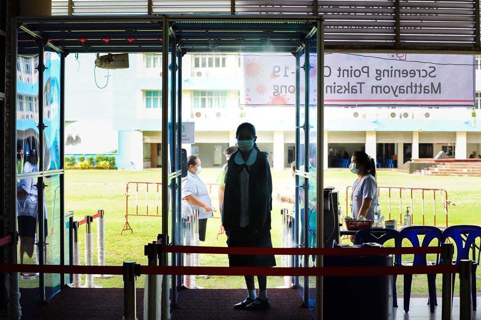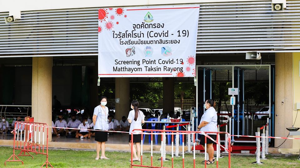 ภาพบรรยากาศวันเปิดภาคเรียนวันแรกของสถานศึกษาในสังกัดองค์การบริหารส่วนจังหวัดระยอง ซึ่งได้เตรียมความพร้อมตามมาตรการสาธารณสุข (สธ.) อย่างมีประสิทธิภาพ เช่นการกำหนดตำแหน่งจุดเว้นระยะห่าง มีป้ายประชาสัมพันธ์ถึงข้อพึงระมัดระวังและสิ่งที่จะต้องปฏิบัติเพื่อป้องกันภัยจากเชื้อไวรัสโคโรนา 2019 หรือ โควิด-19 โดยมีจุดคัดกรองนักเรียนบริเวณหน้าโรงเรียน มีการติดตั้งเจลแอลกอฮอล์ และสบู่เหลวที่อ่างล้างมือ ทั่วบริเวณโรงเรียน โดยมีคณะครูและอาจารย์ดูแล พร้อมทั้งแนะนำผู้ปกครองที่มาส่งบุตรหลานให้เข้าใจถึงขั้นตอนในการส่งบุตรหลานเข้าเรียน นอกจากนี้ทางโรงเรียนยังได้เตรียมความพร้อมในการบริหารจัดการด้านต่าง ๆ เพื่อจัดการเรียนการสอนในวิถีชีวิตรูปแบบใหม่ (New Normal) เน้นความปลอดภัยของนักเรียน เพื่อทำให้ผู้ปกครองมั่นใจว่าโรงเรียนเป็นสถานที่ที่ปลอดภัยสำหรับนักเรียนทุกคน