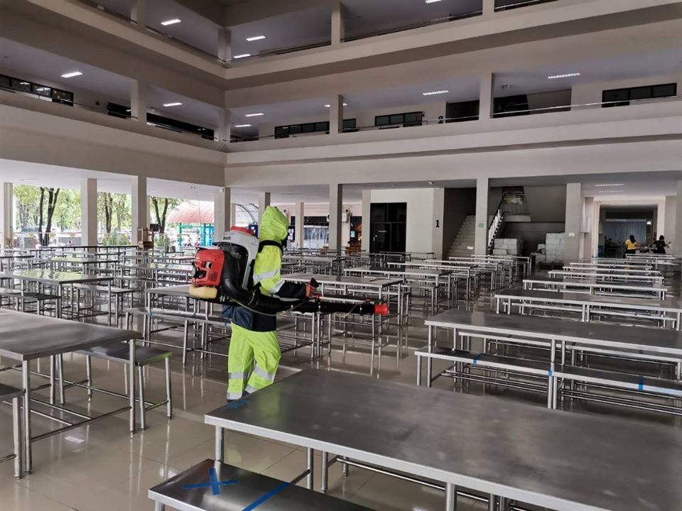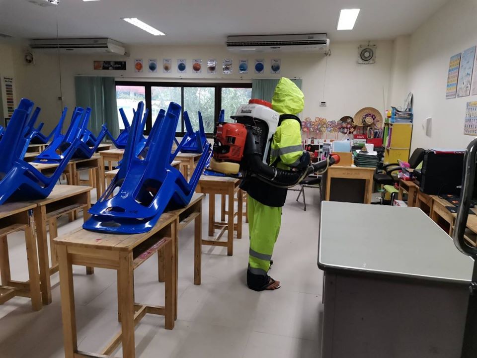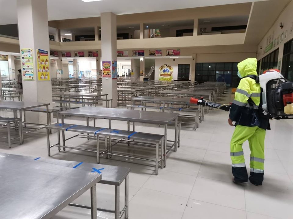 องค์การบริหารส่วนจังหวัดระยอง จัดเจ้าหน้าที่ลงพื้นที่โรงเรียนในสังกัดอบจ.ระยองทําการพ่นฆ่าเชื้อภายในโรงเรียนและภายนอกโรงเรียน
