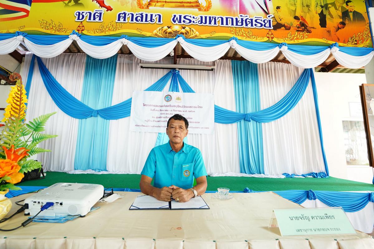 วันที่ 31 สิงหาคม 2563 เวลา 10.00 น. ณ ศูนย์เรียนรู้เศรษฐกิจพอเพียงบ้านทะเลน้อย หมู่ที่ 6 ต.ทางเกวียน อ.แกลง จ.ระยอง นายจรัญ ความเพียร เลขานุการนายกองค์การบริหารส่วนจังหวัดระยอง เป็นประธานเปิดโครงการโครงการอบรมส่งเสริมอนุรักษ์วัฒนธรรมไทย : อาหารไทยอาหารถิ่น โดยมี ดร.กนกวรรณ เบญจาทิกุล รองประธานองค์การบริหารส่วนจังหวัดระยอง (2) กล่าวรายงาน พร้อมด้วย ดร.วัลลภ รองพล ประธานสภาวัฒนธรรมอำเภอแกลง คุณจินตนา งามสนอง นักวิชาการพัฒนาฝีมือแรงงานชำนาญการพิเศษ ผู้ใหญ่วราคม มั่งคั่ง อบต.นายอรุณ ปฏิสังข์ อบต.จิ้น สมคิด คุณปรีชา สรรเสริญ ประธานวิสาหกิจท่องเที่ยวชุมชนบ้านทะเลน้อย คุณชูชาติ สรรเสริญ ประธานกองทุนแม่ของแผ่นดิน แล ผู้เข้ารับการอบรมจาก ตำบลทางเกวียนตำบลเนินฆ้อ และเทศบาลตำบลเมืองแกลง เข้าร่วมโครงการอย่างพร้อมเพรียง