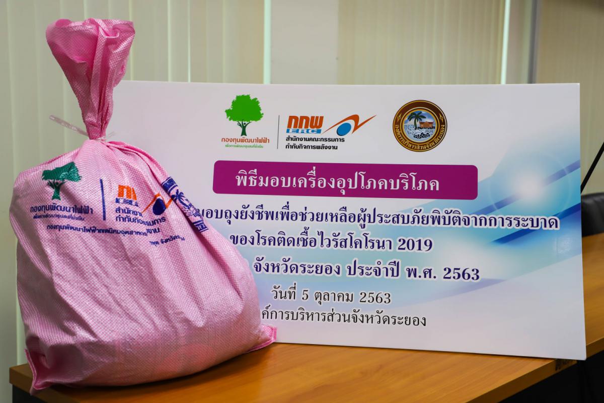 เมื่อวันที่ 5 ตุลาคม 2563 ณ ห้องประชุมองค์การบริหารส่วนจังหวัดระยอง ห้อง 1 ชั้น 8 นายกิตติ เกียรติ์มนตรี รองนายกองค์การบริหารส่วนจังหวัดระยอง (2) เป็นประธานมอบเครื่องอุปโภคบริโภคตามโครงการมอบถุงยังชีพเพื่อช่วยเหลือผู้ประสบภัยจากการแพร่ระบาดของโรคติดเชื้อไวรัสโคโรนา 2019 (โควิด-19) จังหวัดระยอง ประจำปีงบประมาณ 2563 พร้อมคณะผู้บริหาร สมาชิกสภาองค์การบริหารส่วนจังหวัดระยอง หัวหน้าส่วนราชการ ผู้อำนวยการกอง เข้าร่วมเป็นเกียรติในการมอบเครื่องอุปโภคบริโภคตามโครงการมอบถุงยังชีพเพื่อช่วยเหลือผู้ประสบภัยจากการแพร่ระบาดของโรคติดเชื้อ โควิด -19 โดยอบจ.ระยอง ได้จัดทำโครงการมอบถุงยังชีพ เพื่อช่วยเหลือผู้ประสบภัยจากการระบาดของโรคติดต่อโควิด-19 ขึ้น โดยการจัดหาเครื่องอุปโภคบริโภคในการดำรงชีพให้แก่ผู้พิการ ผู้ป่วยติดเตียง และผู้ยากไร้ ในจังหวัดระยอง โดยมีวัตถุประสงค์เพื่อช่วยเหลือ เยียวยา ฟื้นฟู และส่งเสริมพัฒนาคุณภาพหลังเกิดโรคระบาด ซึ่งได้รับงบประมาณจากกองทุนพัฒนาไฟฟ้า เขตนิคมอุตสาหกรรมมาบตาพุด จังหวัดระยอง จำนวนเงิน 1,230,900 บาท ให้ไปจัดซื้อเครื่องอุปโภคบริโภคเพื่อจัดทำถุงยังชีพ จำนวน 2,238 ถุง โดยมอบให้ 7 เขตพื้นที่ ได้แก่