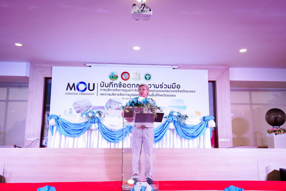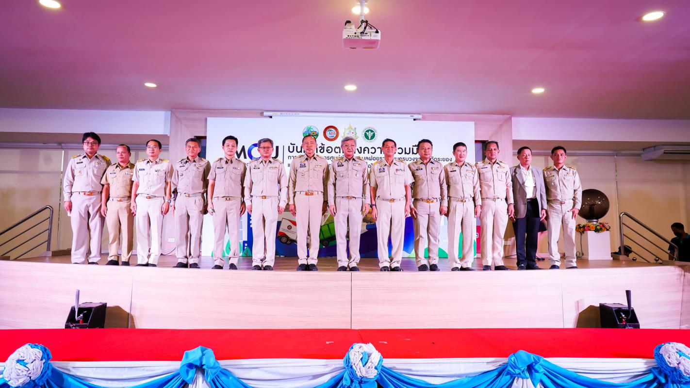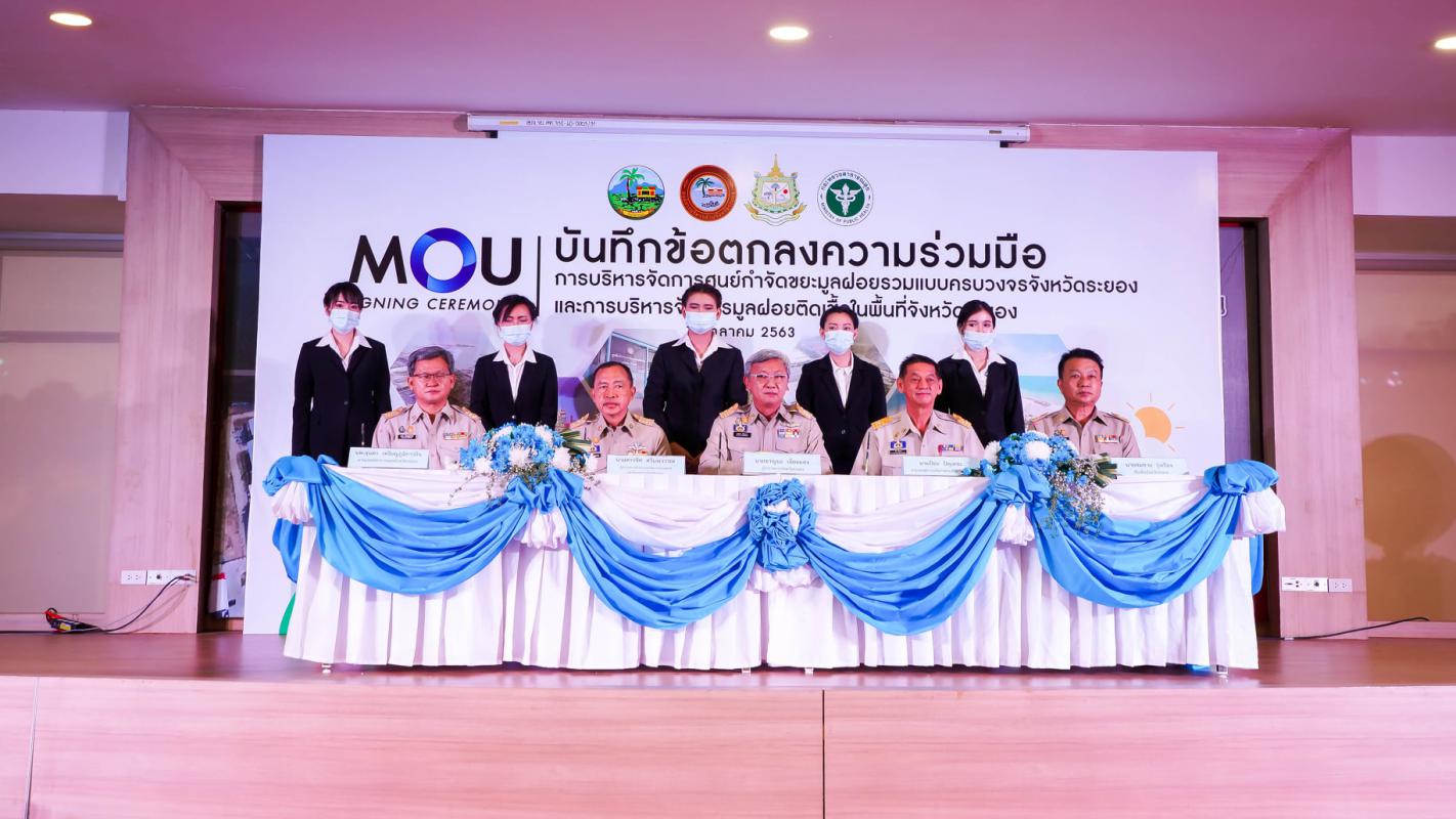 พิธีลงนามบันทึกข้อตกลงความร่วมมือการบริหารจัดการศูนย์กำจัดขยะมูลฝอยรวมแบบครบวงจร จังหวัดระยอง และบันทึกข้อตกลงความร่วมมือการบริหารจัดการมูลฝอยติดเชื้อในพื้นที่ จังหวัดระยอง