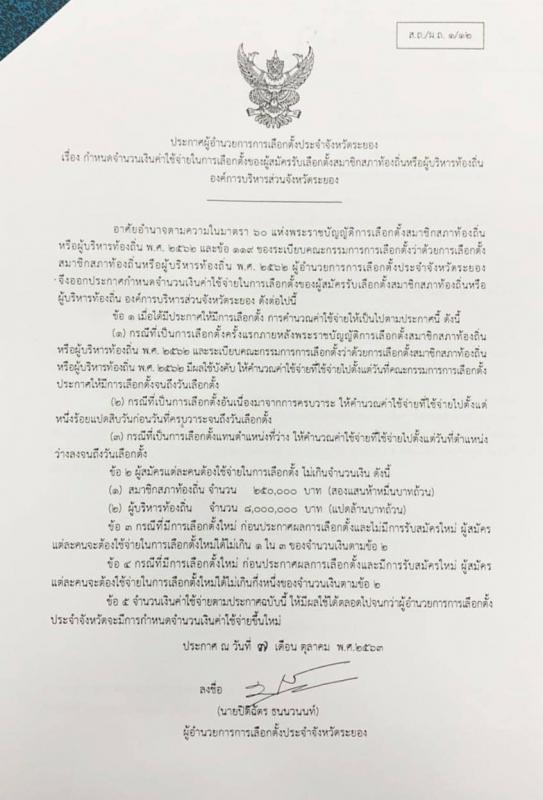 โดยมีระเบียบวาระการประชุมอยู่ 4 วาระด้วยกัน ซึ่งวาระที่สำคัญคือ ระเบียบวาระที่ 3 เรื่องพิจารณา – การกำหนดจำนวนของประกาศและแผ่นป้ายเกี่ยวกับการหาเสียงเลือกตั้งตามข้อ 19 ของระเบียบคณะกรรมการเลือกตั้ง ว่าด้วยวิธีการหาเสียงและลักษณะต้องห้ามในการหาเสียงเลือกตั้งสมาชิกสภาท้องถิ่นหรือผู้บริหารท้องถิ่น พ.ศ. 2563 โดยสรุปได้ว่า การหาเสียงเลือกตั้ง และติดแผ่นป้ายเกี่ยวกับการหาเสียงเลือกตั้งจำนวนของประกาศเกี่ยวกับการหาเสียงเลือกตั้งผู้สมัครจัดทำได้ไม่เกินห้าเท่าของจำนวน หน่วยเลือกตั้ง และจำนวนแผ่นป้ายเกี่ยวกับการหาเสียงเลือกตั้งที่ผู้สมัครจัดทำได้ไม่เกินสามเท่าของจำนวนหน่วยเลือกตั้งของแต่ละองค์กรปกครองส่วนท้องถิ่น ซึ่งค่าใช้จ่ายในการหาเสียงต้องไม่เกิน 1.สมาชิกสภาองค์การบริหารส่วนจังหวัดระยอง 250,000 บาท 2.นายกองค์การบริหารส่วนจังหวัดระยอง 8,000,000 บาท