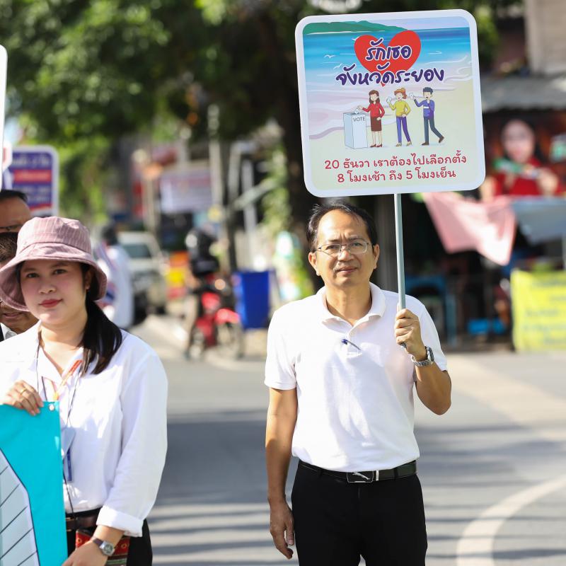 เดินรณรงค์ประชาสัมพันธ์สร้างความรู้ความเข้าใจ ในการเลือกตั้งสมาชิกสภาองค์การบริหารส่วนจังหวัดและนายกองค์การบริหารส่วนจังหวัดระยอง