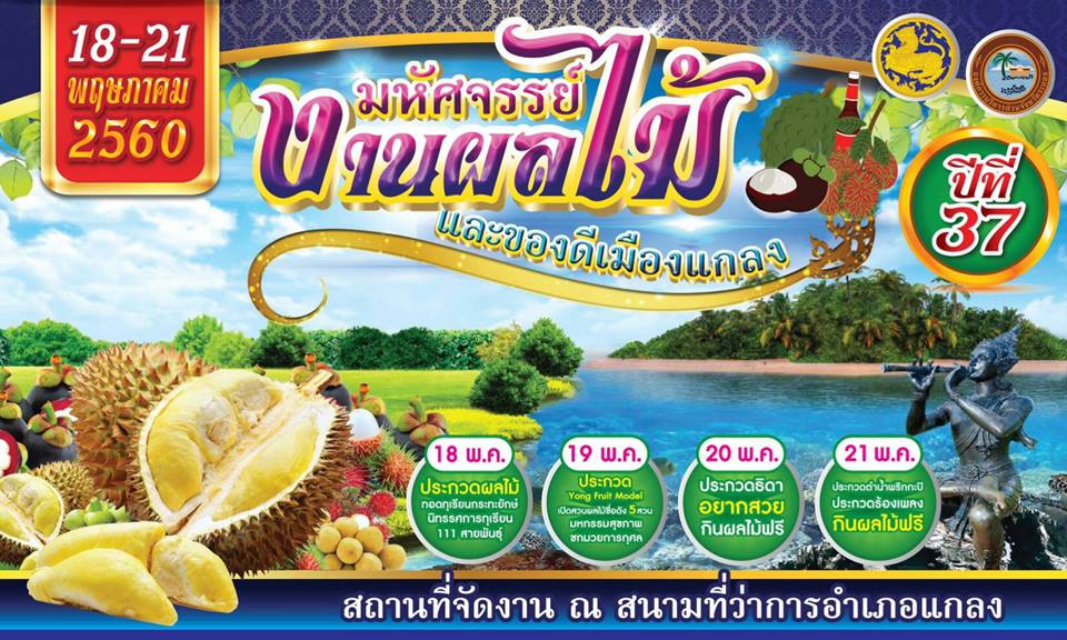มหัศจรรย์งานผลไม้ และของดีเมืองแกลง” 18-21 พฤษภาคม 2560 ณ สนามที่ว่าการอำเภอแกลง จ.ระยอง