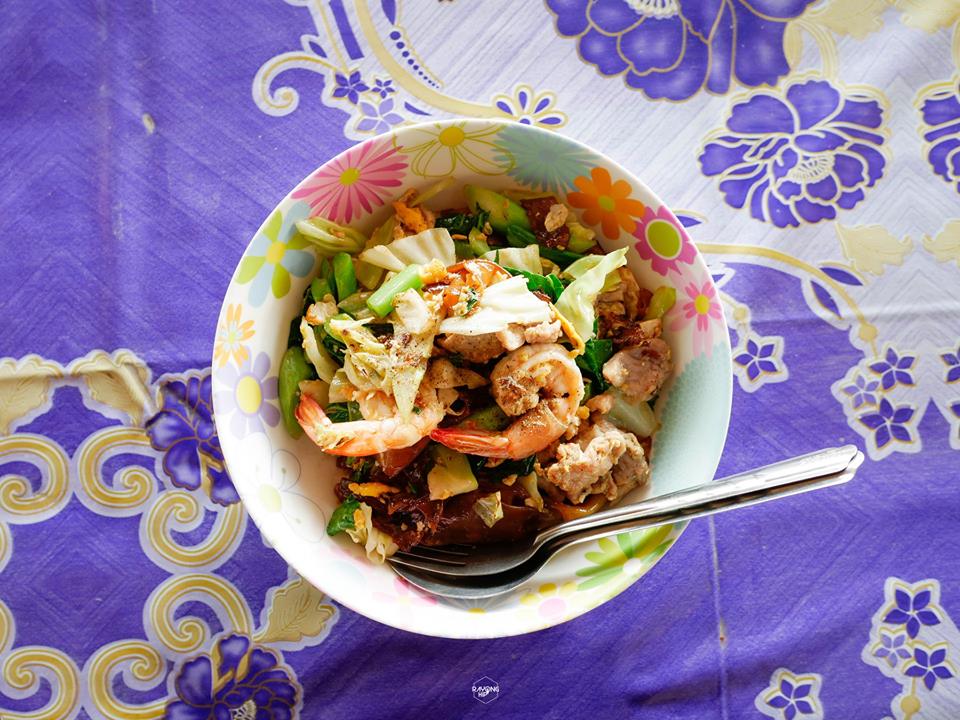 ทีบ้านหนองตาเสี่ยง กับราดหน้าหนืดนุ่มเครื่องแน่น เส้น หมู กุ้ง ผัก มาแบบเต็มชาม รสชาติเข้มข้น ต้องการผักเยอะหรือเส้นน้อยบอกได้ ผัดซีอิ้วหอมกลิ่นกระทะนิดๆ ผักคะน้าสดกรอบใหม่ ร้านบ้านๆ แต่ให้ความคุ้มจุใจเสิร์ฟร้อนทุกชาม