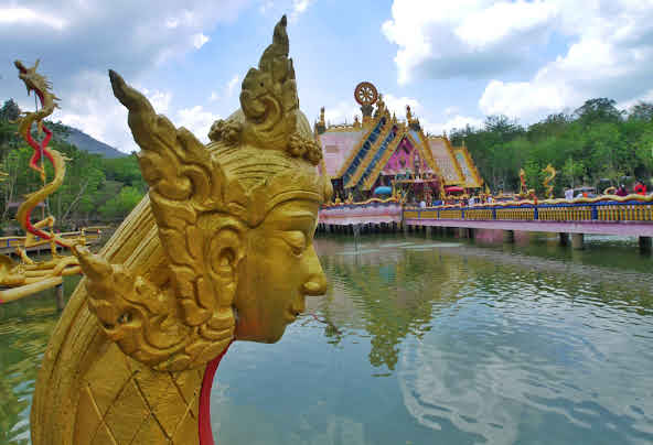 เมื่อเดินทางมาถึงหน้าวัดก็ต้องตกตะลึงกับความงามของรูปปั้นต่าง ๆ ต้องขอบอกก่อนนะครับว่า มีรูปปั้นเกี่ยวกับพุทธศาสนา