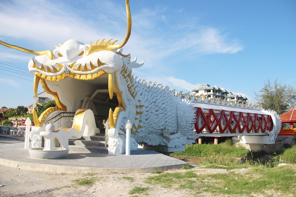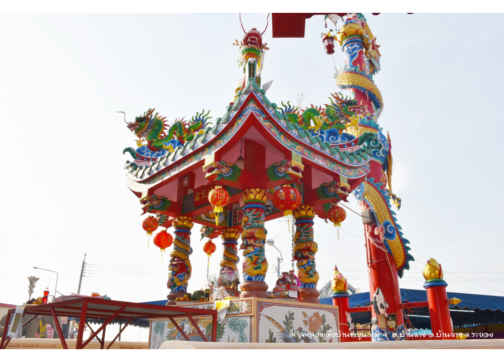 อำเภอบ้านฉางอีกแห่งหนึ่งที่ติดกับหาดพยูน อย่าง “ศาลเจ้าหลวงเตี่ยบ้านพยูน” ไฮไลต์ของที่นี่อยู่ที่สะพานมังกรสุดตระการตา
