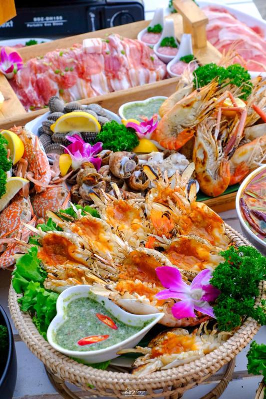 เมนูอาหารของที่นี่มีหลากหลายนอกจากซีฟู้ดแล้วยังมีอาหารเช่น เมนูยำ กุ้งแม่น้ำเผา ถั่วหมูกรอบ ไข่ตุ๋นทะเลหม้อไฟ ทะเลดองเกาหลี