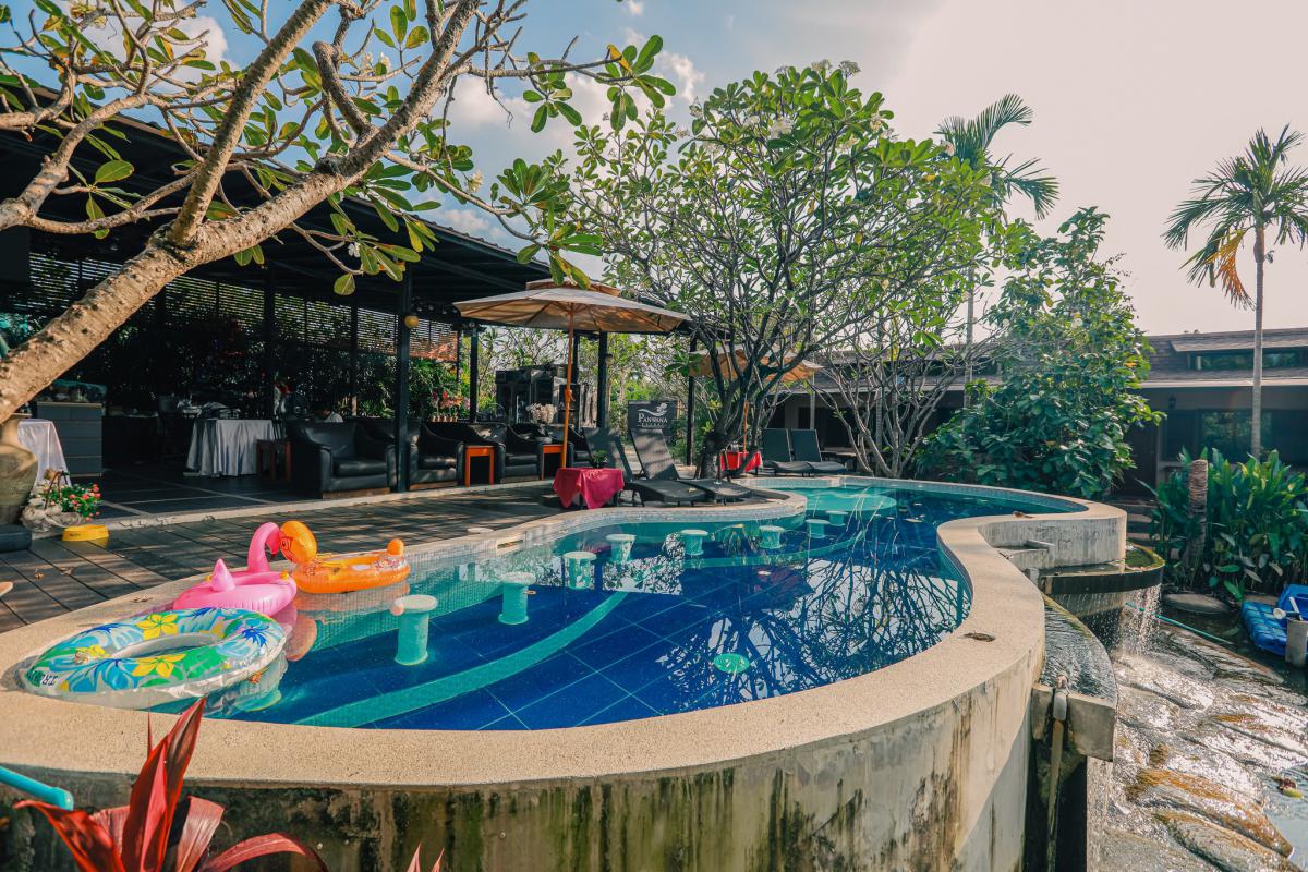 บริเวณริมบ่อน้ำยังมีการตกแต่งเป็นมุมนั่งชิลสวยๆ และยังมีร้านกาแฟ Pada Cafe ภายในรีสอร์ทที่ตกแต่งในสไตล์บาหลี