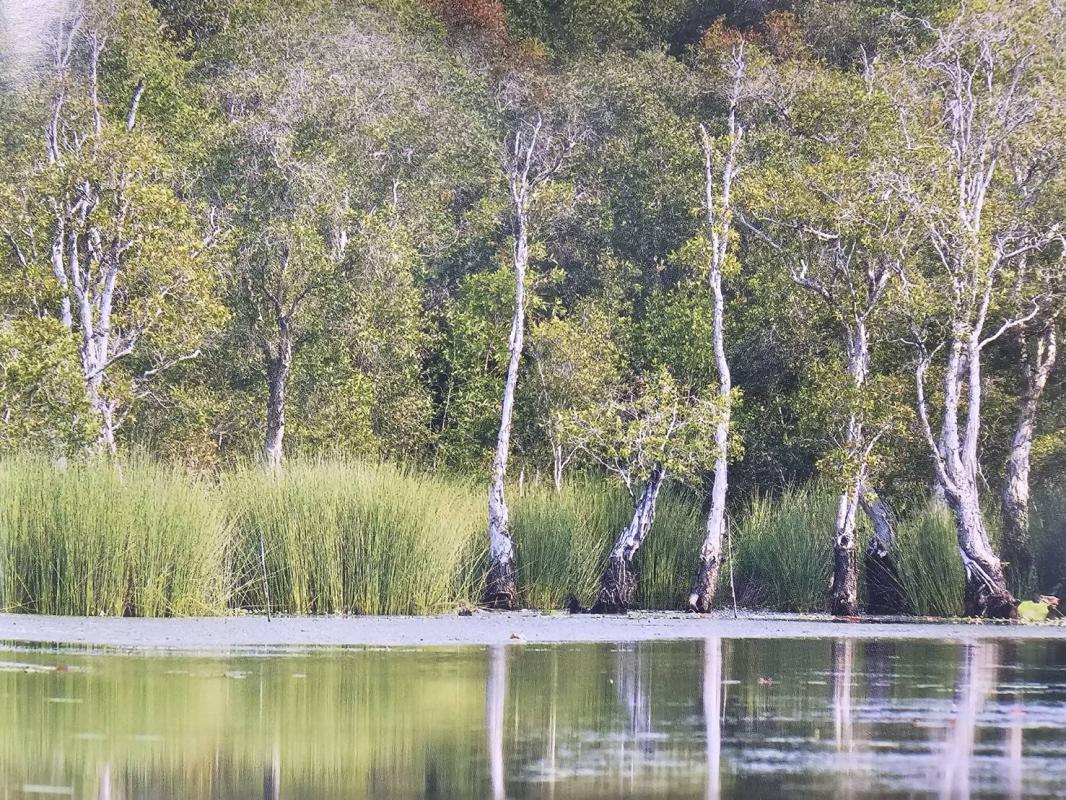 พรรณไม้รายล้อมอันมากมายยากจดจำ ทั้งจิกนา ปอทะเล สนุ่นชูช่อเป็นกอสวย ตะแบกนายืนต้นสูงกระจูด หญ้าแซม