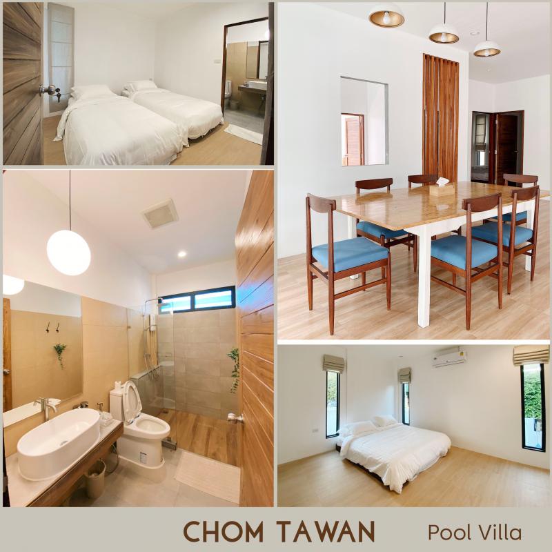 ให้เลือกด้วยกัน 2 ประเภท มี 3 ห้องนอน 3 ห้องน้ำ เข้าพักได้มากสุดถึง 11 คนต่อหลัง บรรยากาศดี มีชายหาดส่วนตัว